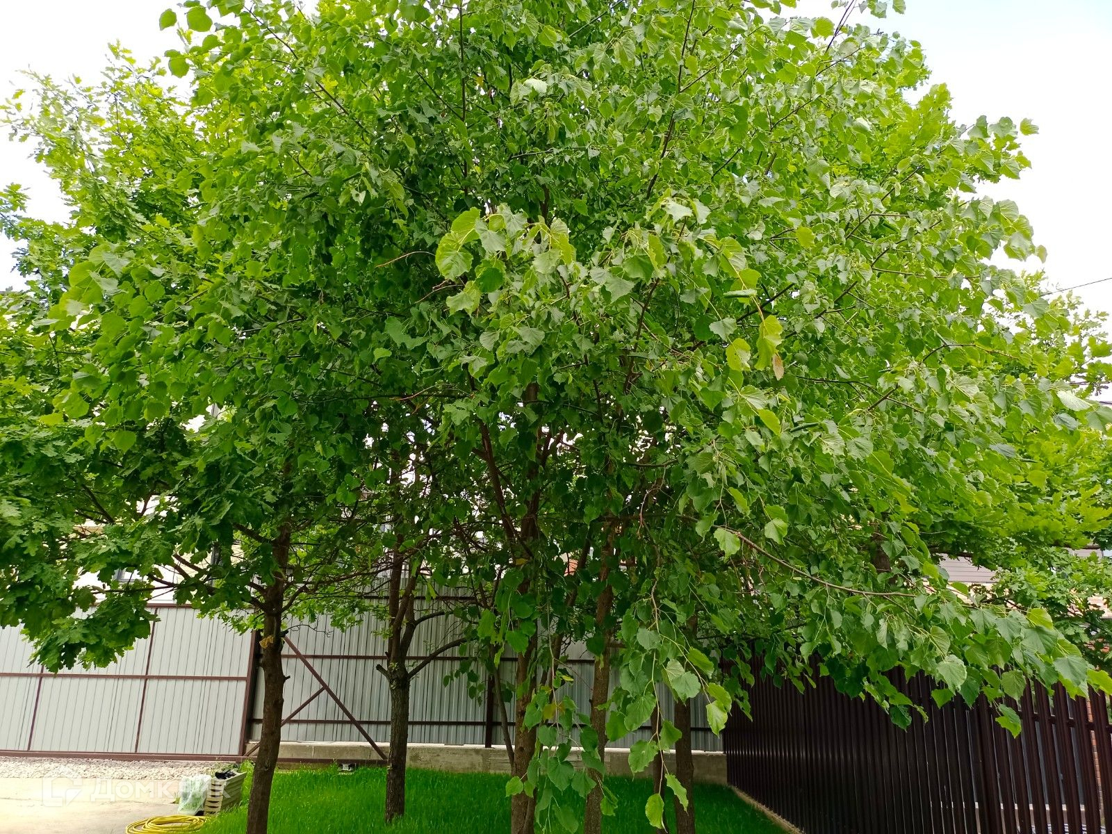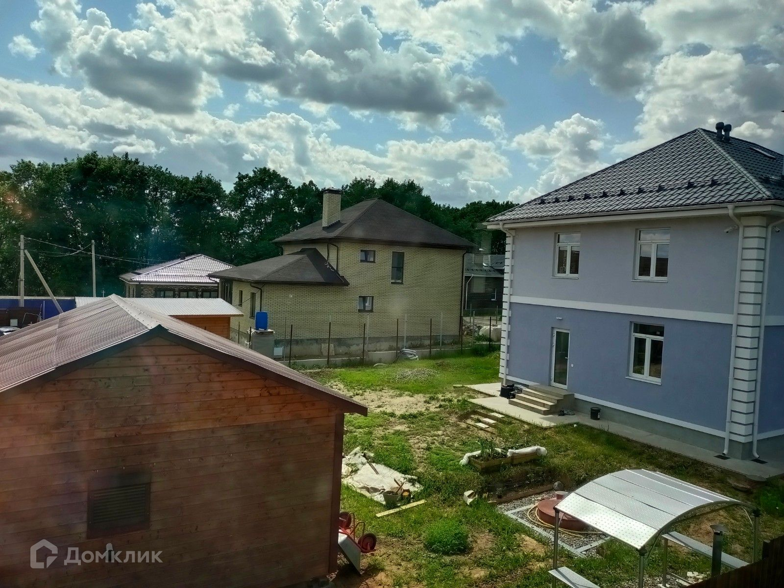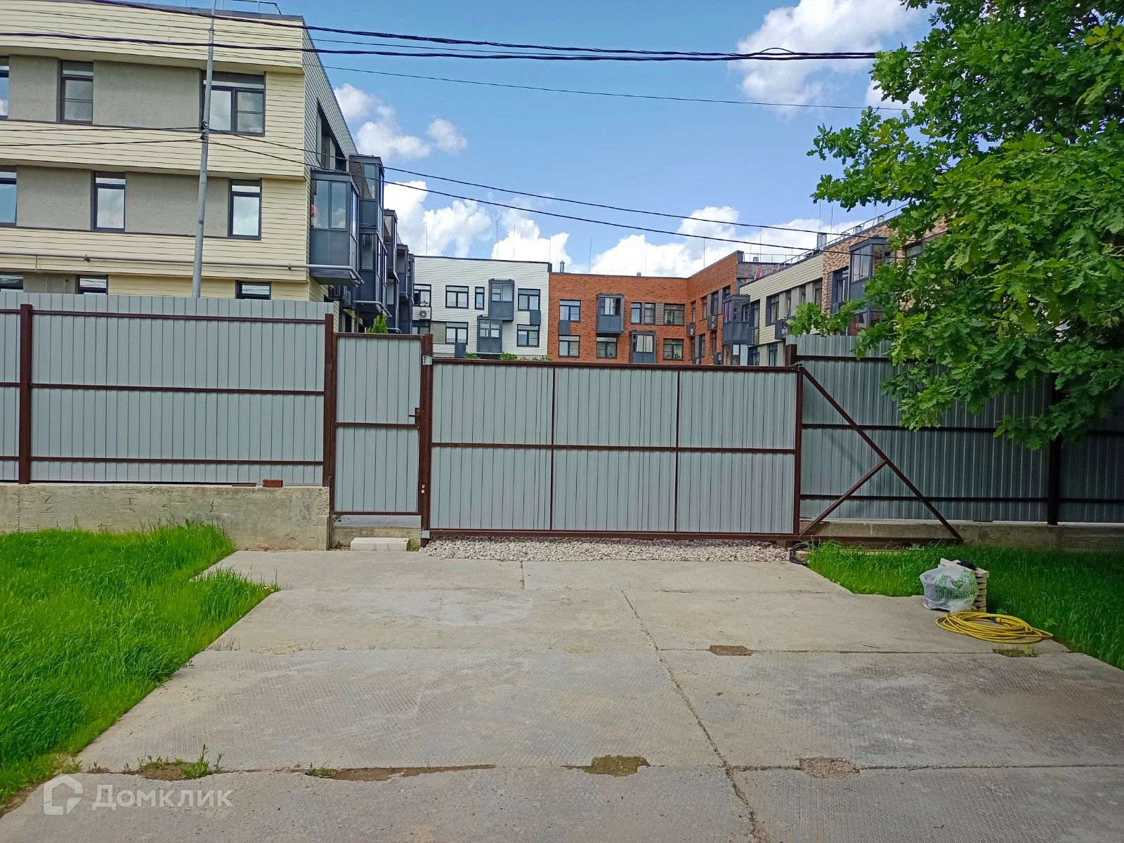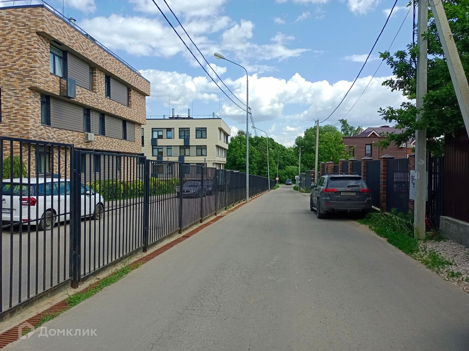 На участке есть несколько деревьев (дубки), есть асфальтированная парковка внутри двора, внутри поселка дороги так же покрыты асфальтом.