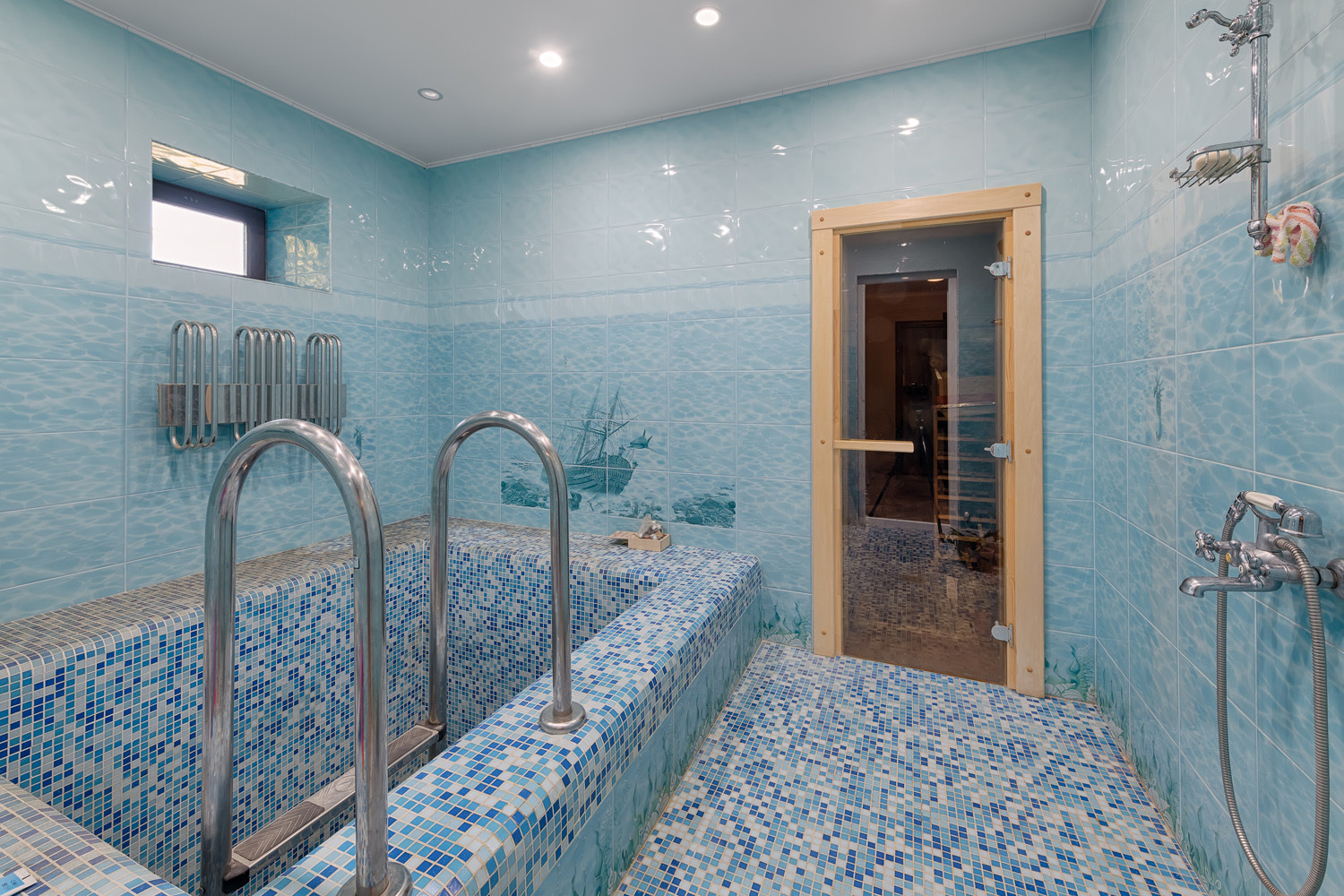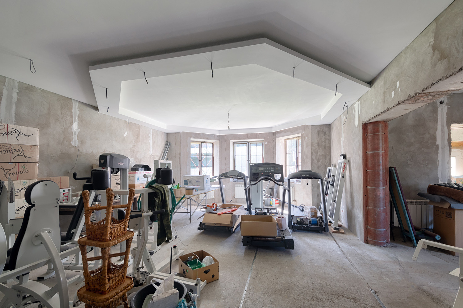 Цокольный этаж: котельная, звукоизолированная комната (подойдет для музыкальной комнаты, домашнего кинотеатра), спортзал ( подходит для полноценных тренировок, оборудован премиальными Итальянскими тренажерами "Panatta"), постирочная, винная комната, кладовая, санузел, помещение водоподготовки, тамбур.