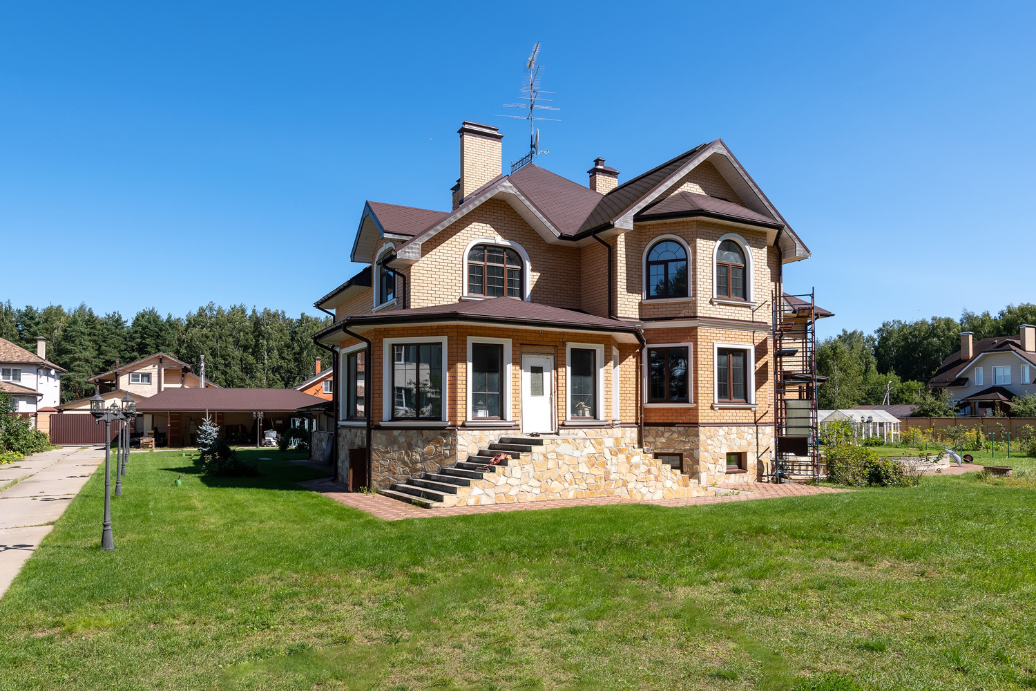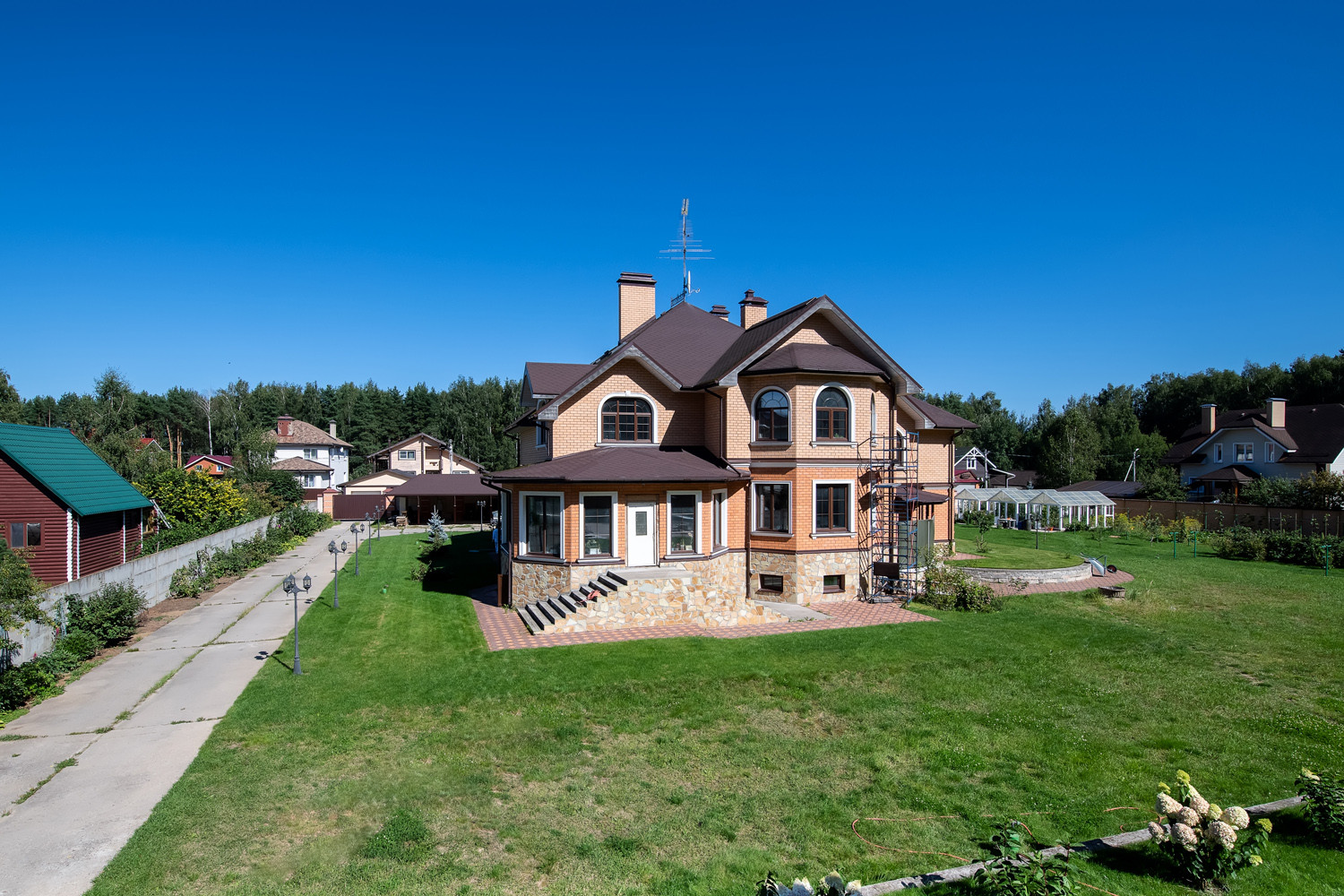 Три теплицы размером - 3м х 8м. Спортивные площадки. Теннисный корт с резиновым покрытием, размером - 12м х 24м. Дизайнерское уличное освещение. Установлено видеонаблюдение, что обеспечит Вашу безопасность.
