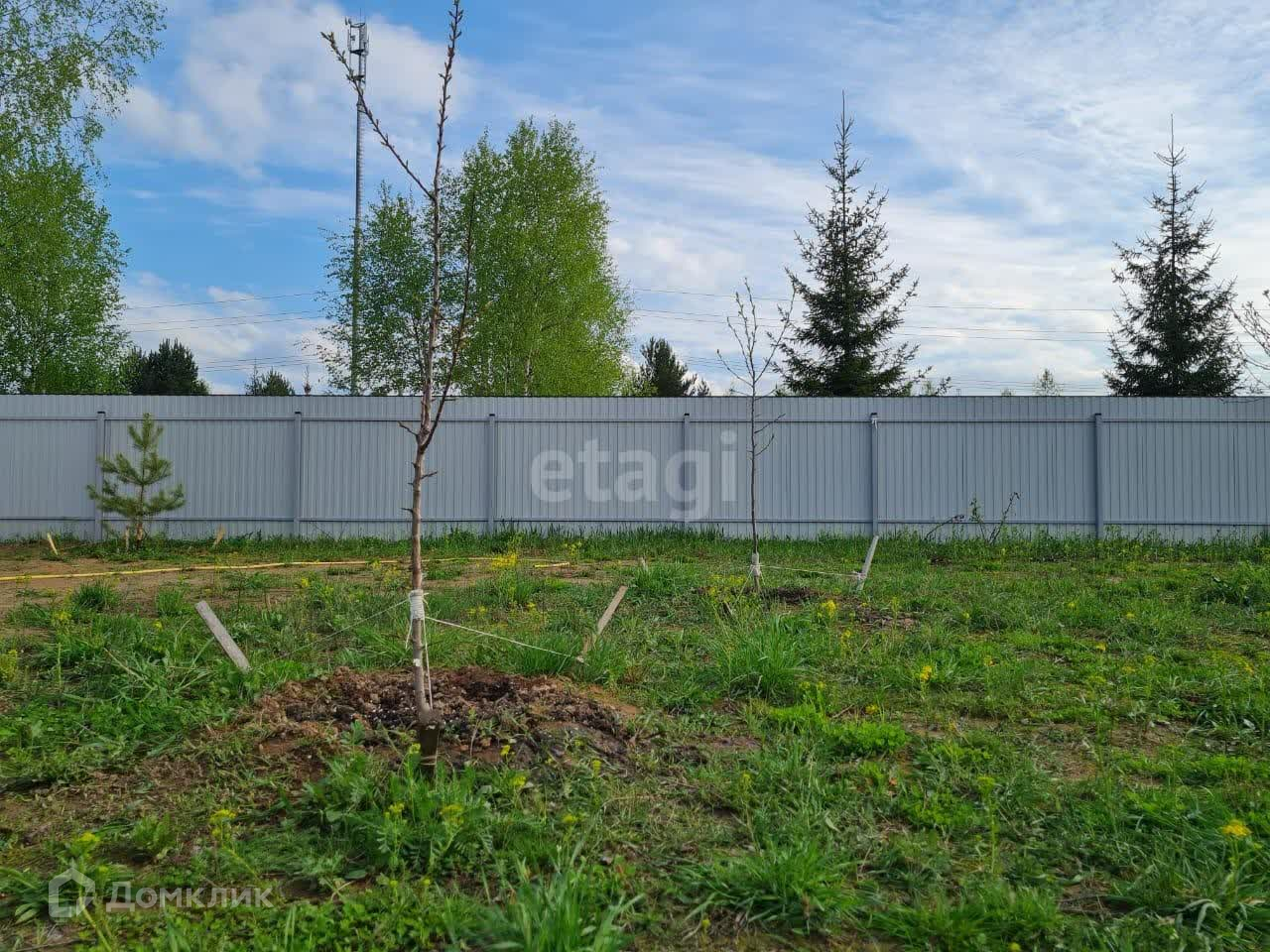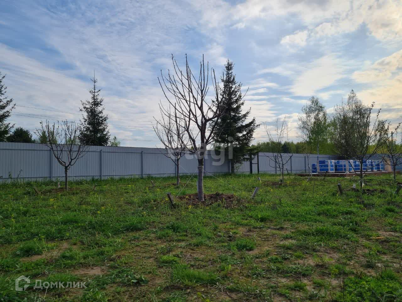 Участок огорожен забором с распашными воротами. На территорию уже заведено электричество, а также разбит плодовый сад. Залит прочный фундамент, готовый к возведению дома вашей мечты.