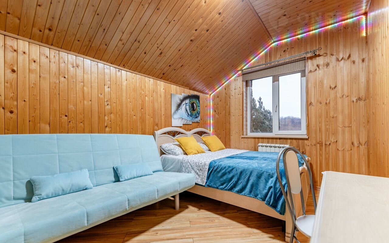 на 2 этаже имеется 3 изолированные спальни, небольшая гостиная с 2 диванами, раздельный санузел с душевой кабиной.