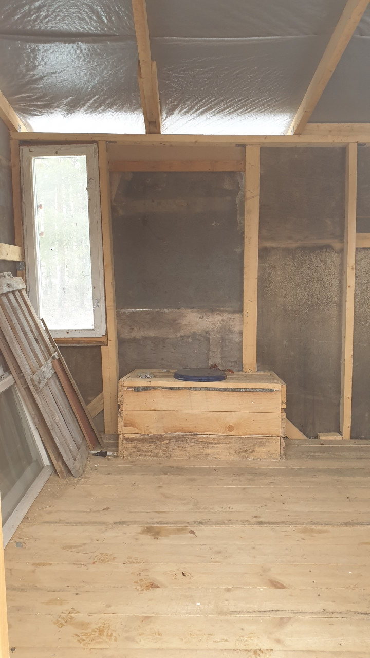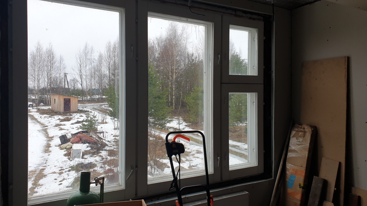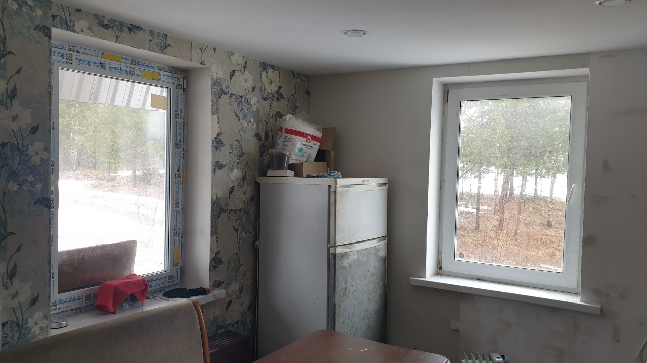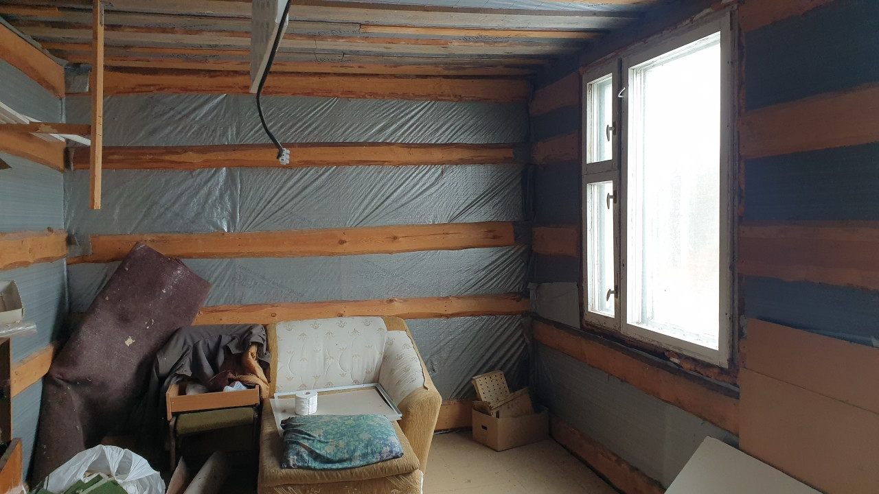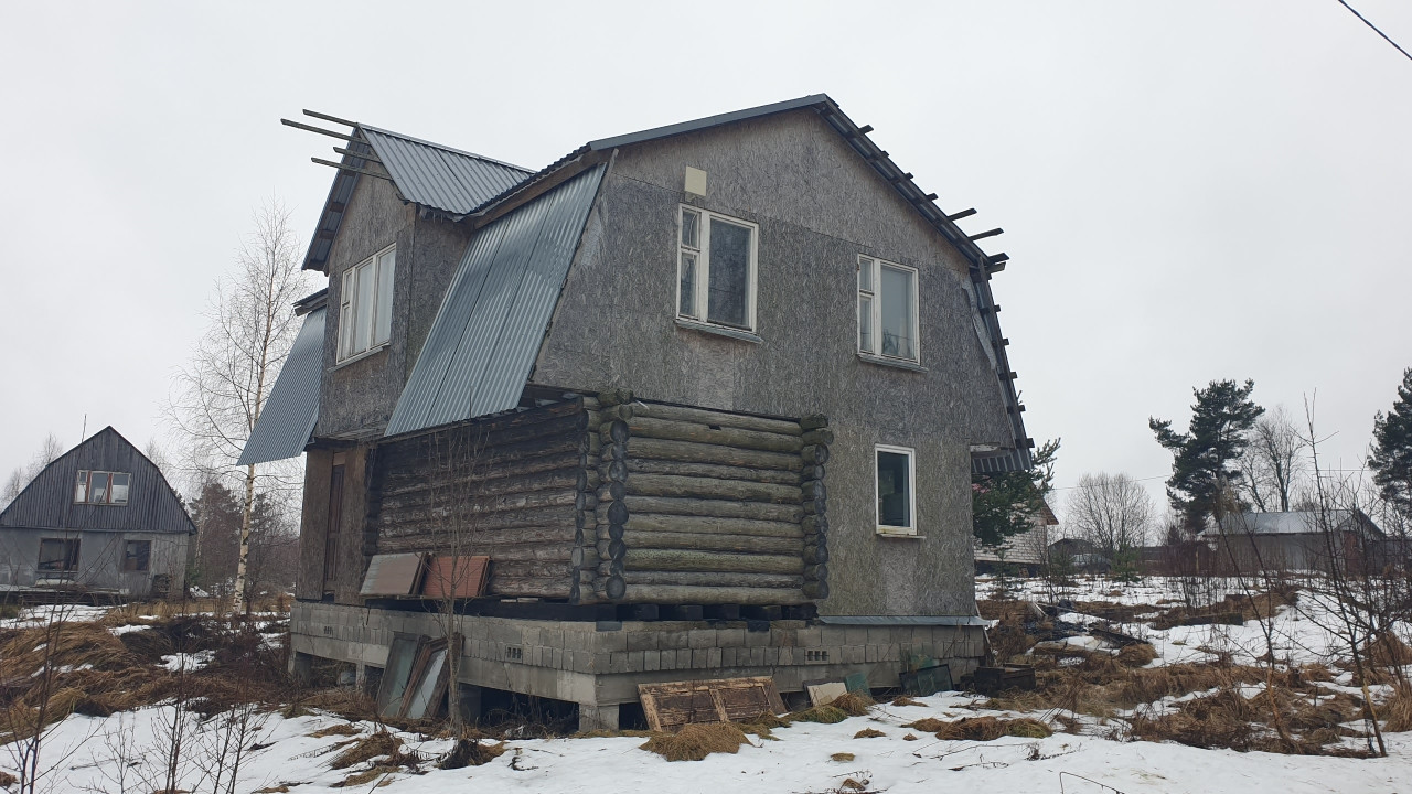 Снаружи дом обшит плитами ОСБ. Кровля оцинкованный металл. Окна – местами стеклопакеты, местами – хорошие деревянные рамы.