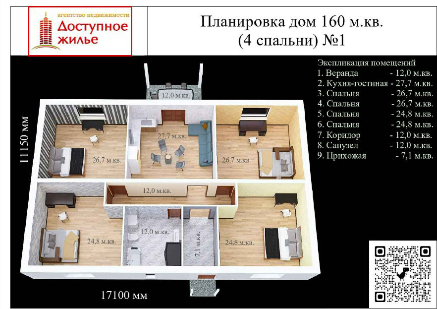 Состав дома в базовом варианте: