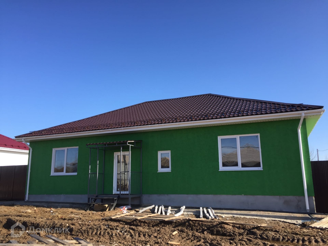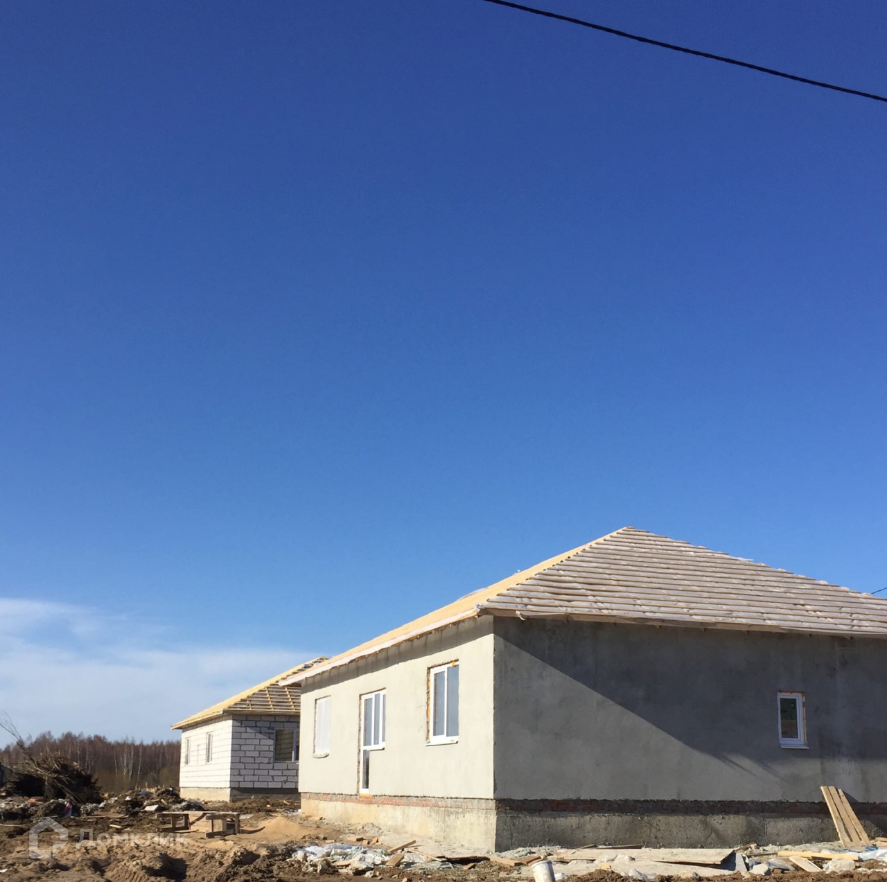 Дом одноэтажный. Построен из газосиликатного блока, кровля выполнена металлочерепицей. Фундамент ленточный на бетонных колоннах. Предчистовая отделка всех стен (чистовая отделка по вашему желанию также возможна). Также есть возможность поставить беседку, баню, гараж, бассейн. Для этого будут выведены необходимые коммуникации.