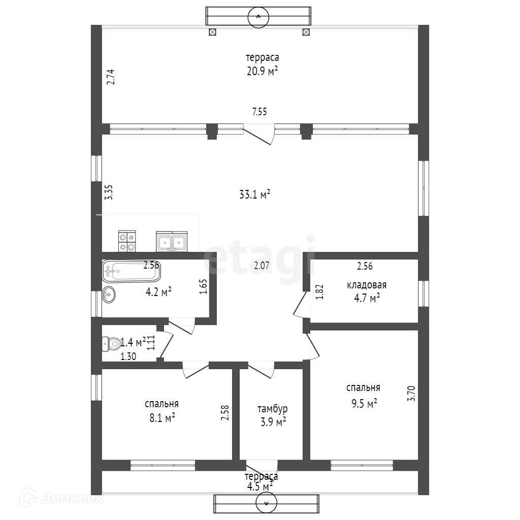 Общая площадь 90 м2