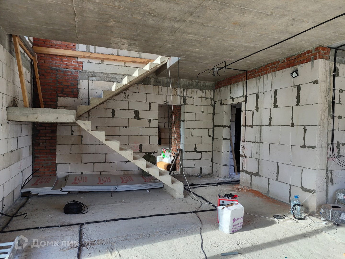 Стоит коттедж на полноценном ленточном фундаменте , перекрытия и лестницы железобетонные.