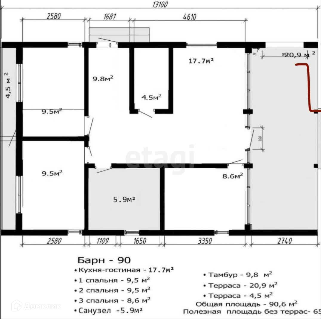 ДОМ. Общая площадь 90 кв.м. Кухня-гостиная 17,7 кв.м. Все комнаты изолированные.