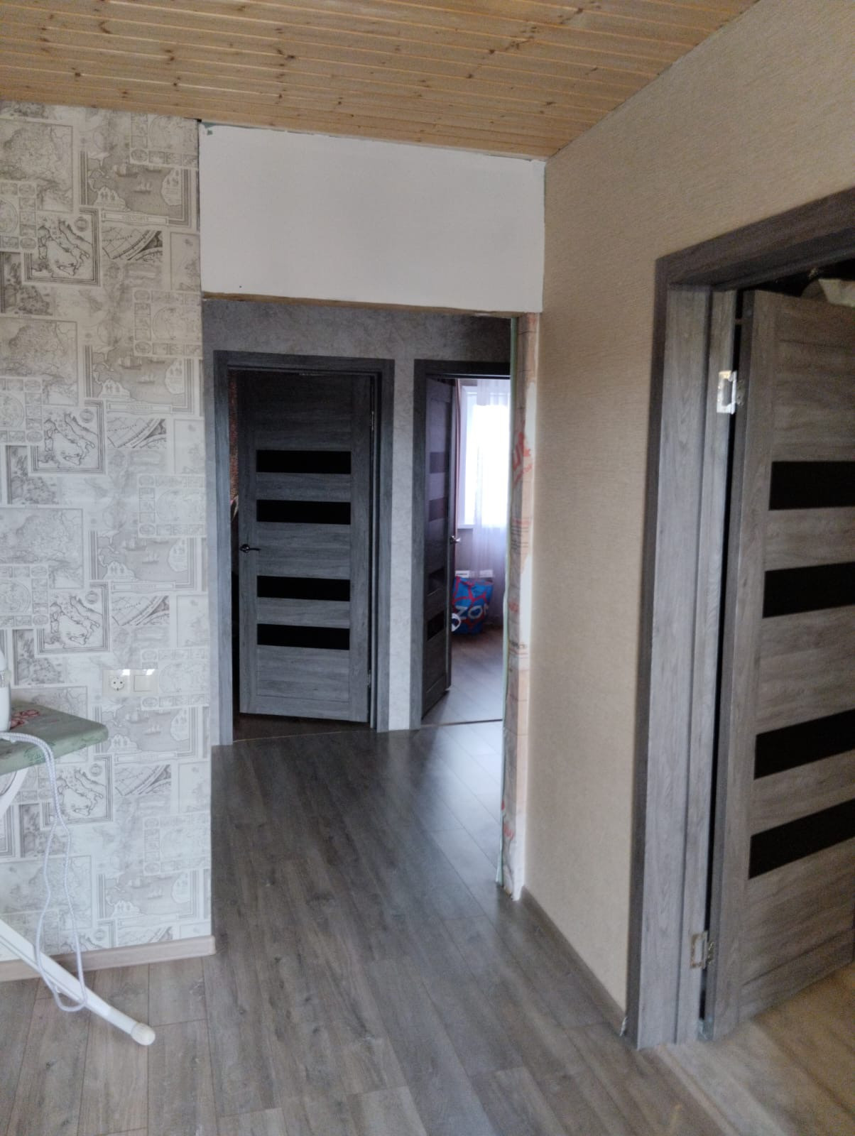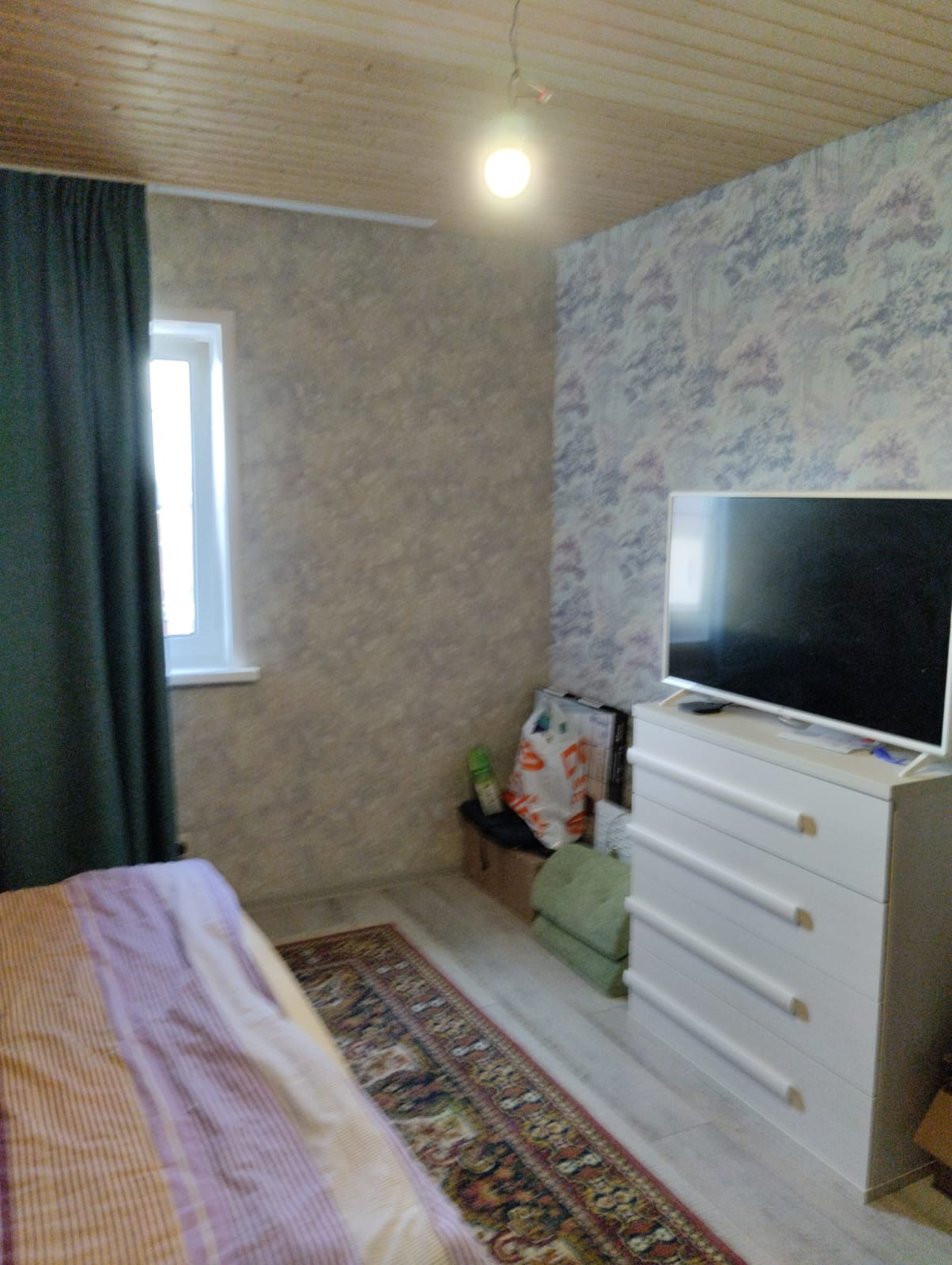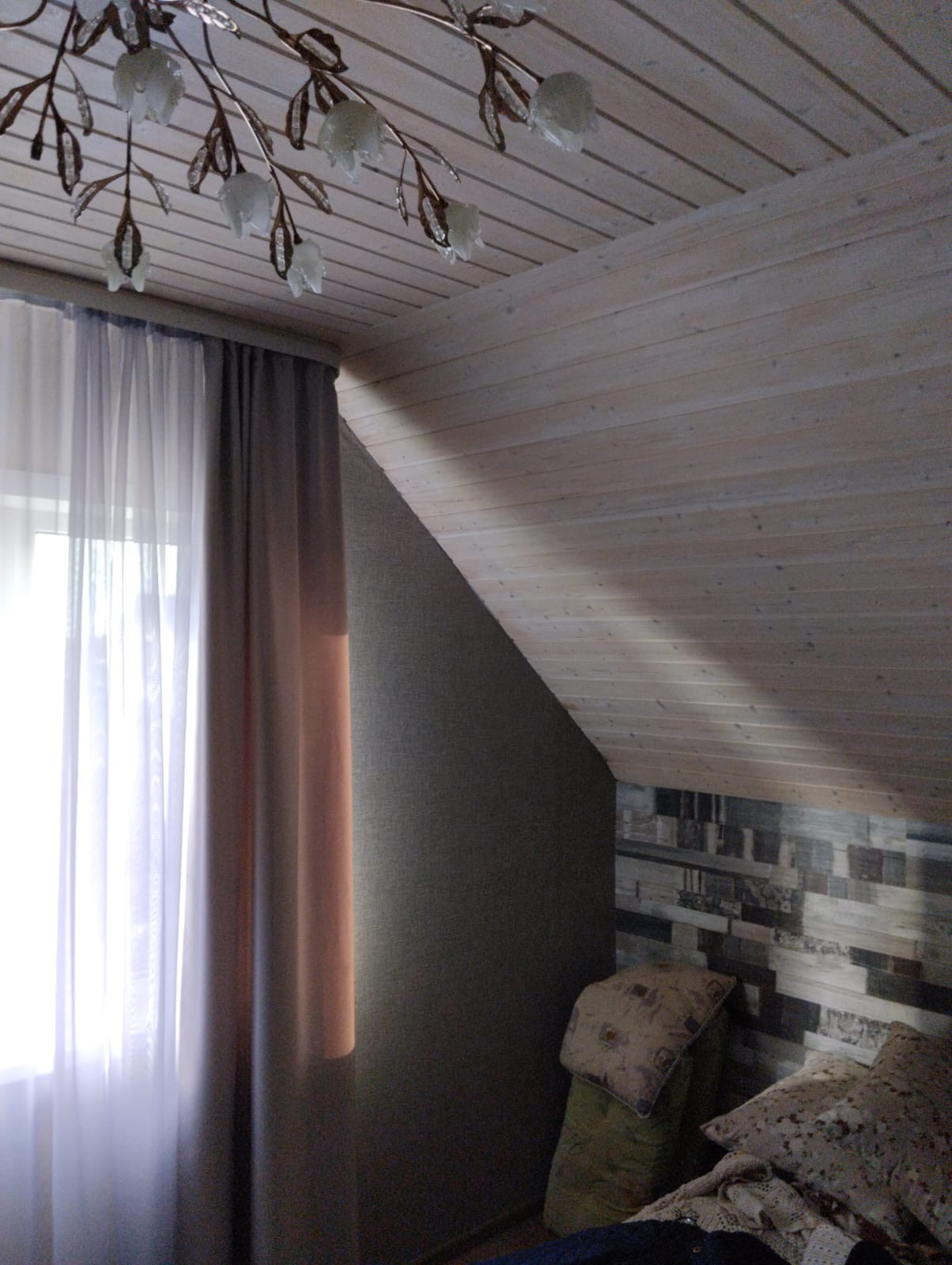 Внутренняя отделка комбинированная обои и вагонка.