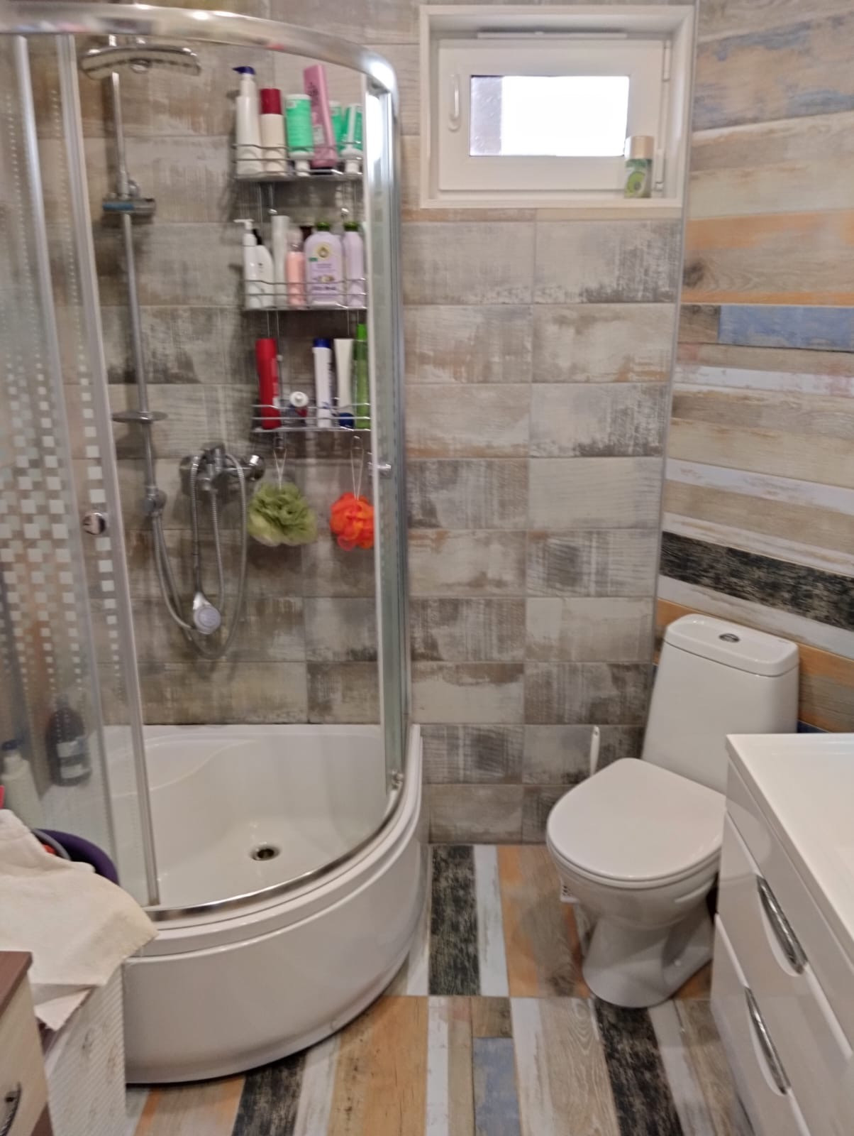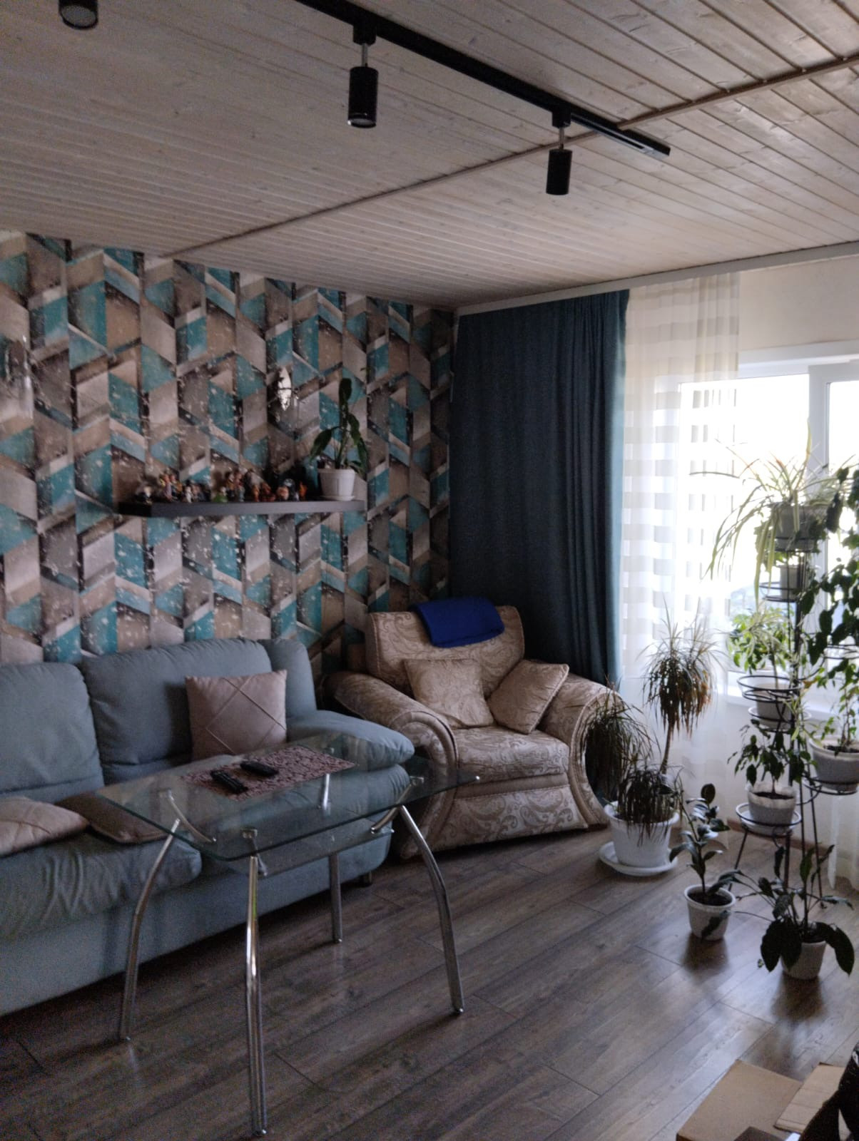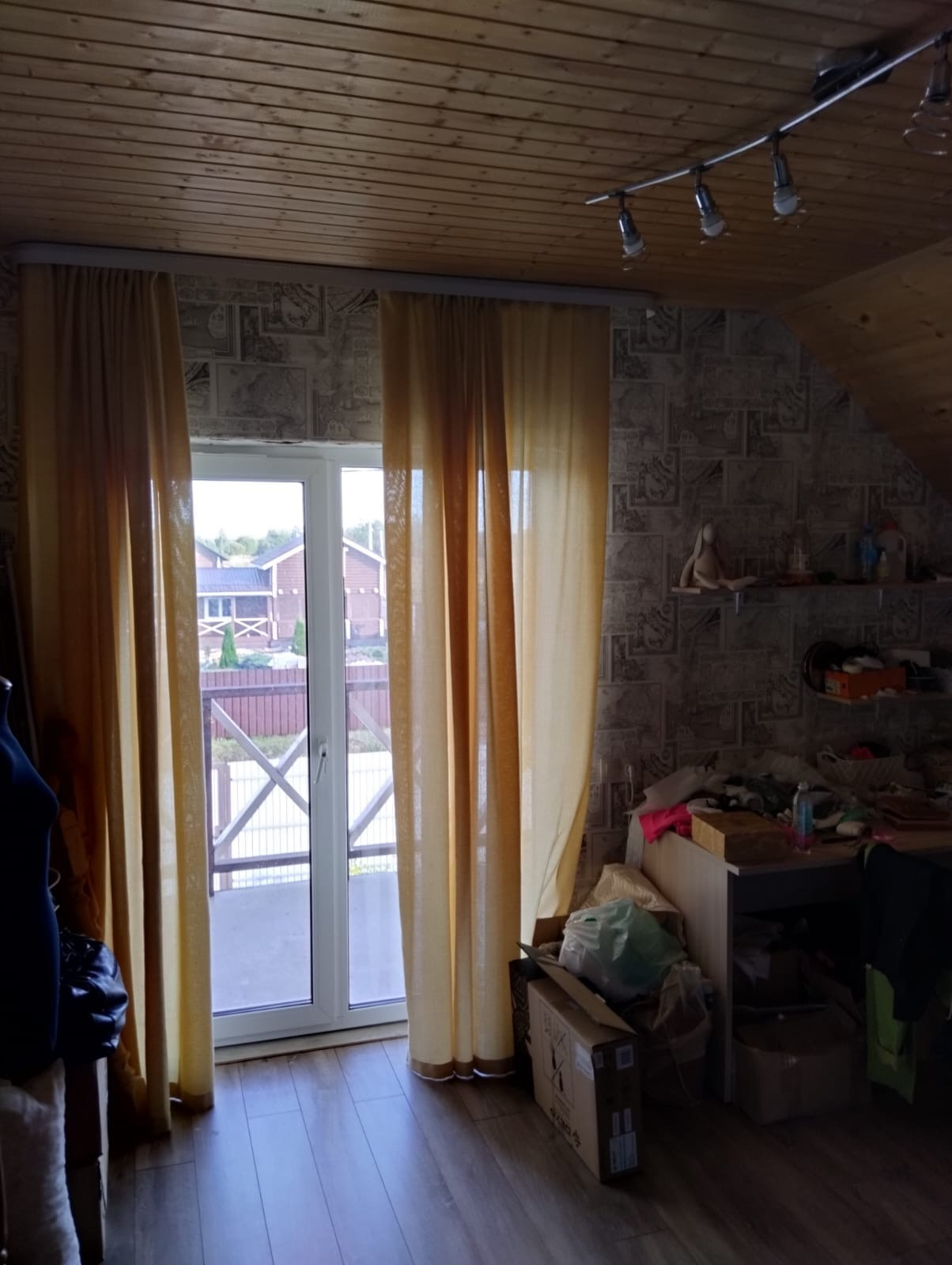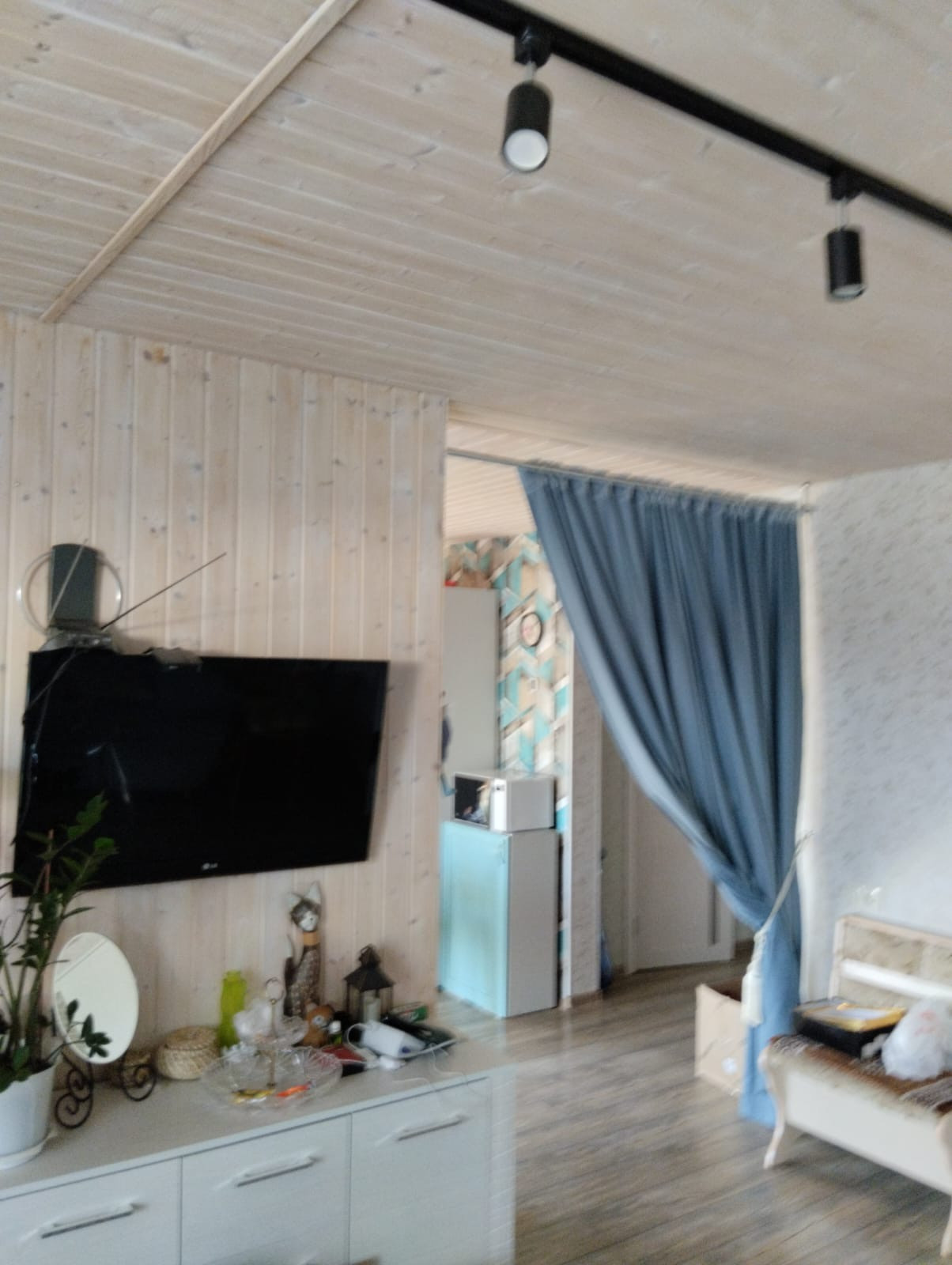 Внутренняя отделка комбинированная обои и вагонка.