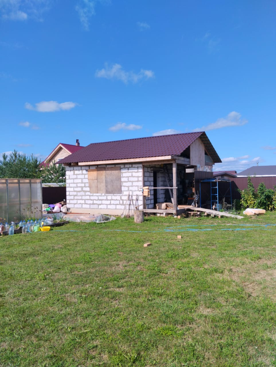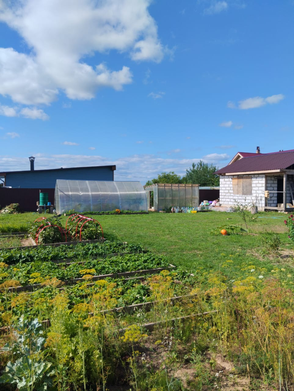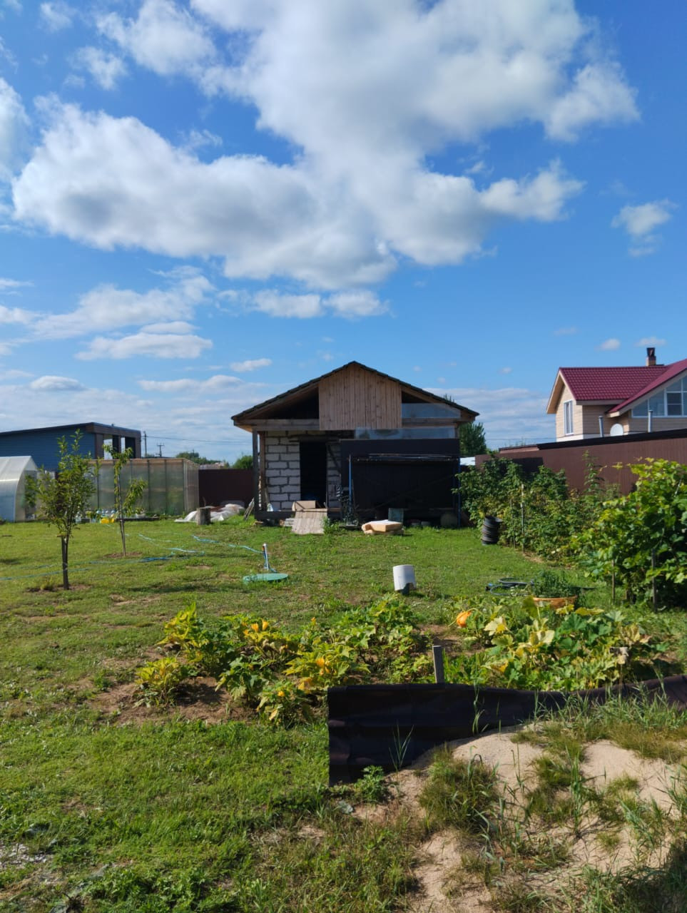 На территории расположена баня и летняя кухня из пеноблока на ленточном фундаменте.