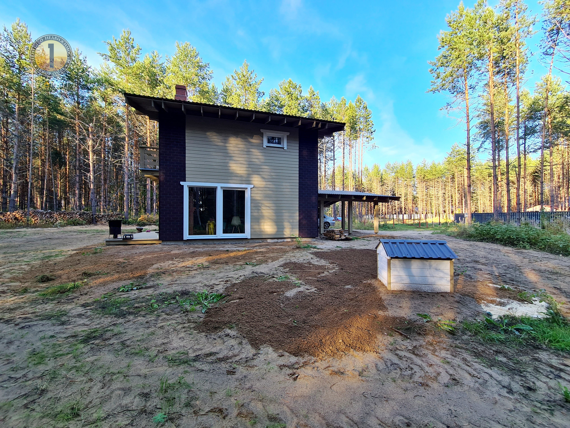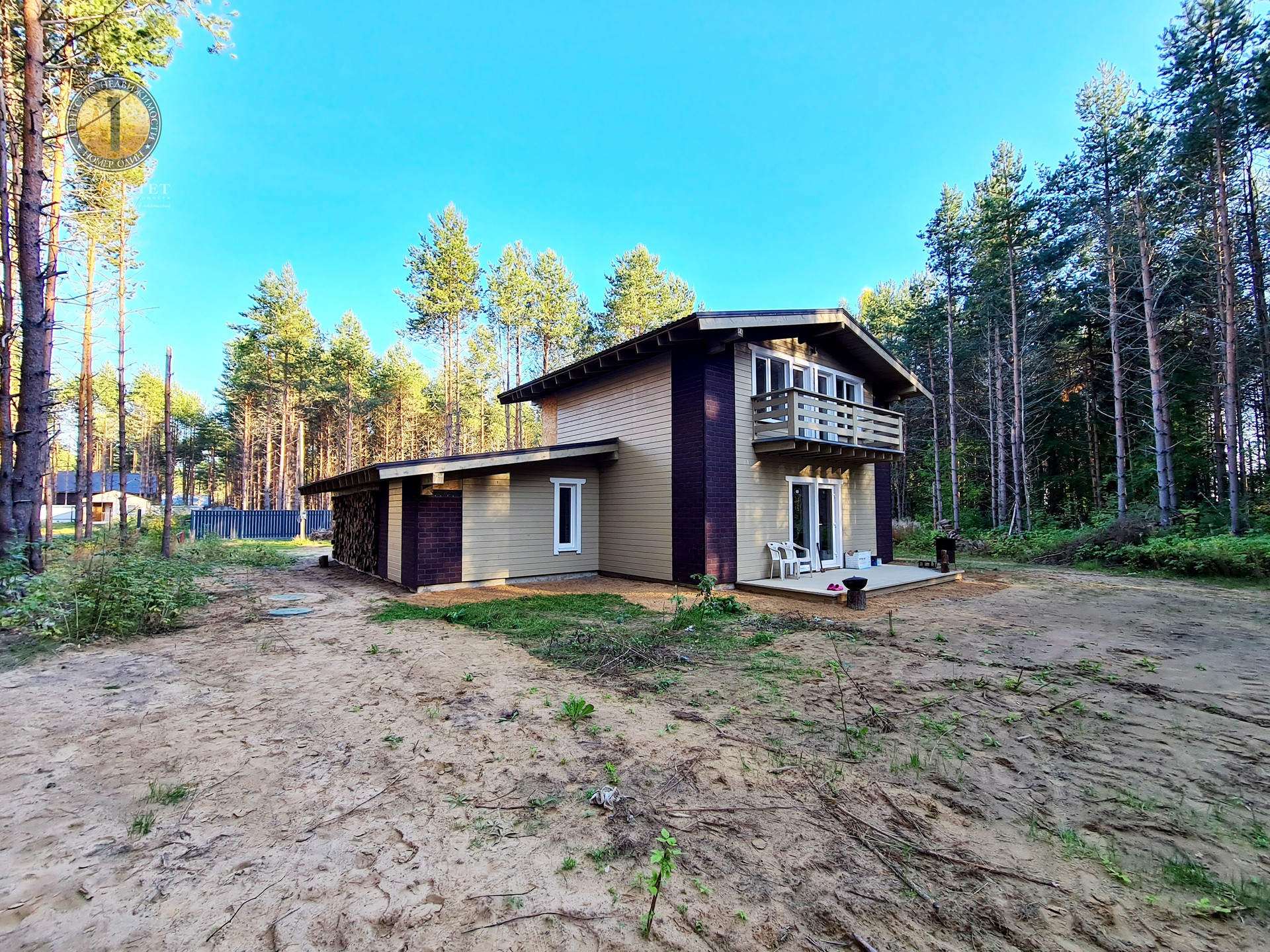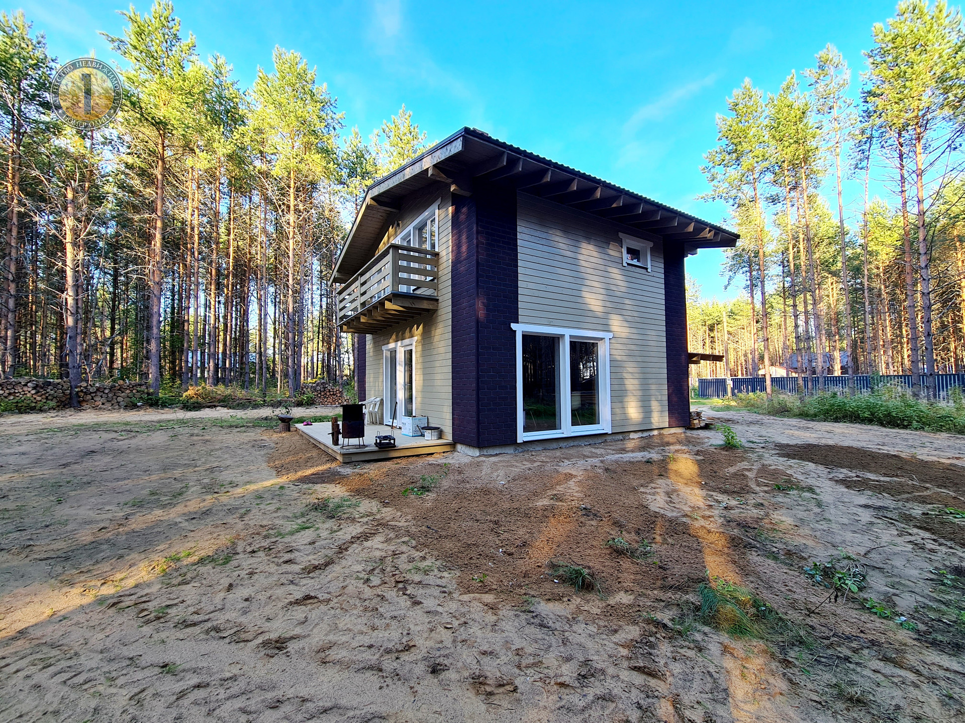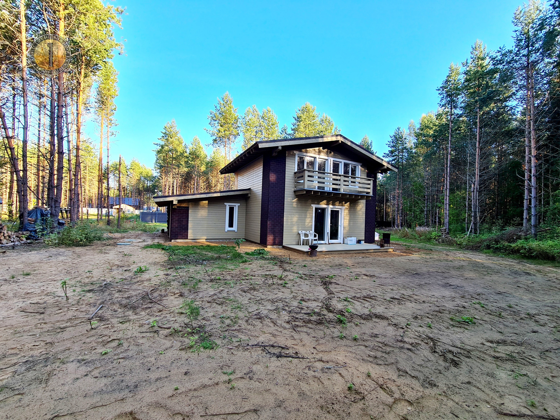 Дом расположен на земельном участке 1153 кв.м., с плодородной почвой. Участок интересной треугольной формы, межевание сделано. Милейшие сосны вокруг участка создают еще более потрясающую атмосферу.