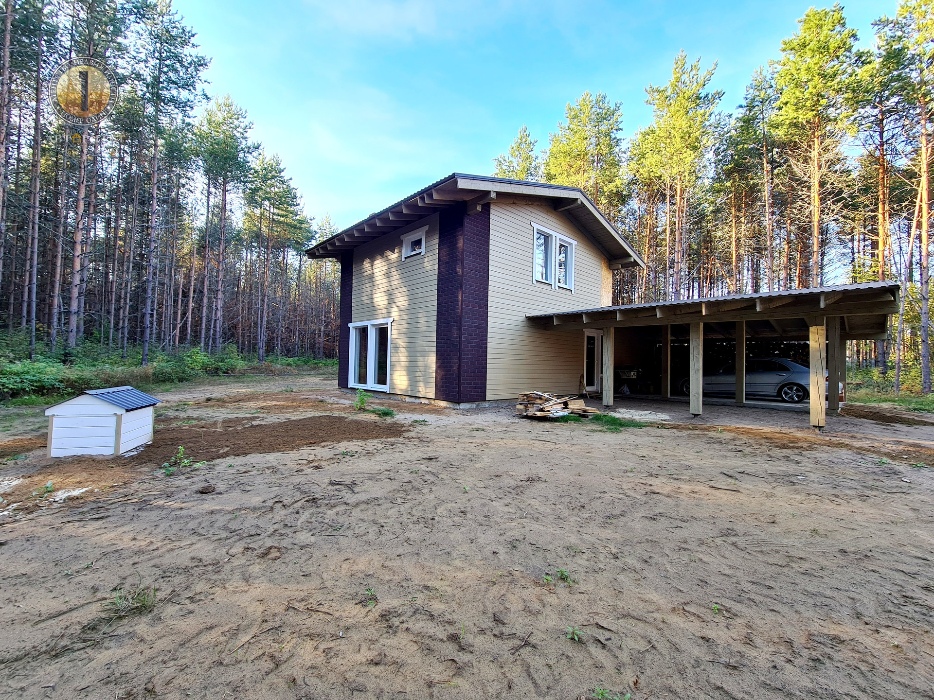 Дом каркасный, возведен в 2 этажа, Метраж дома составляет 84,8 кв.м. + 48 кв.м. навес, который можно использовать для авто или сделать зимний сад, зону крытой терассы для отдыха и т.д.