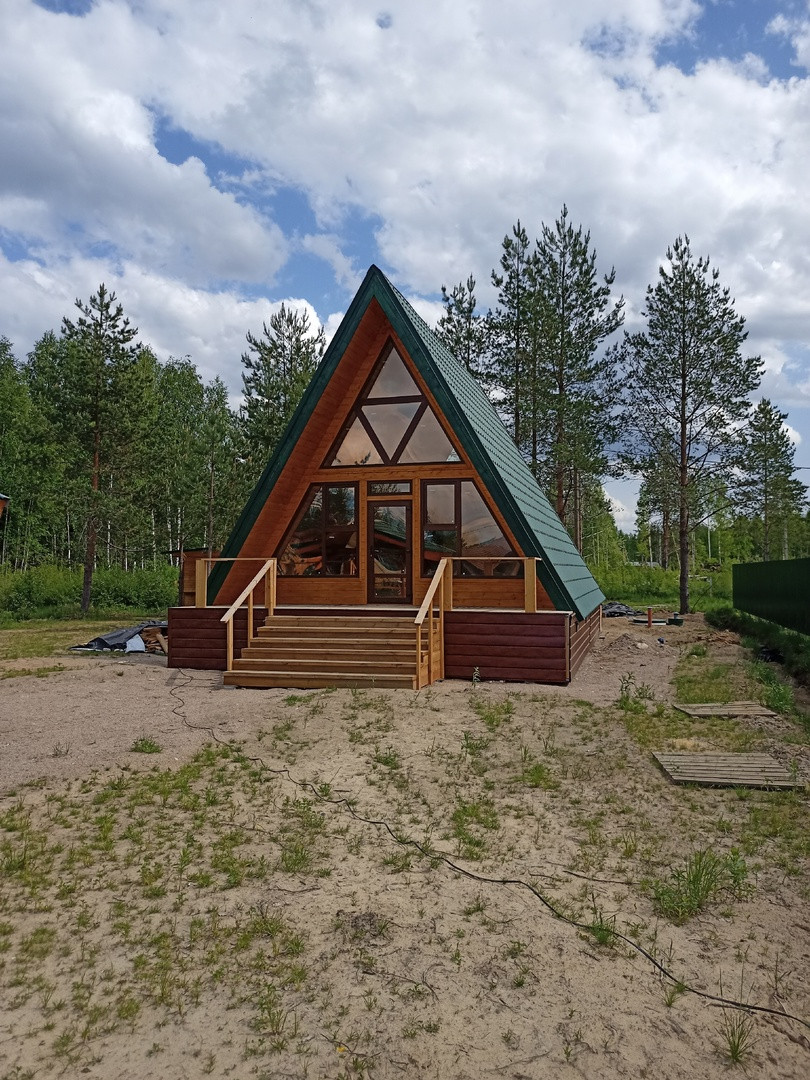 Продам каркасный дом в стиле А-фрейм. На участке расположен дом 7м*8м+2 террасы 2м и 1 м, беседка 3м*3м, бытовка 2м*4м. Каркасный дом утепление 200мм, все дерево обработано антисептиком, фундамент бетонные сваи, качественная металлочерепица Трамонтана, хорошие окна с внешней защитой, мансардное окно с кухни, входная дверь с терморазрывом, внутренняя отделка - эмитация бруса, теплый пол, ламинат, установлен септик Лос ИталБио 6, подведены все трубы к дому, скважина, доступность к дому круглый год. В 2024 год - подведение газа. До рыбинского водохранилища - 5 минут. Участок сухой, под домом и беседкой - пгс.