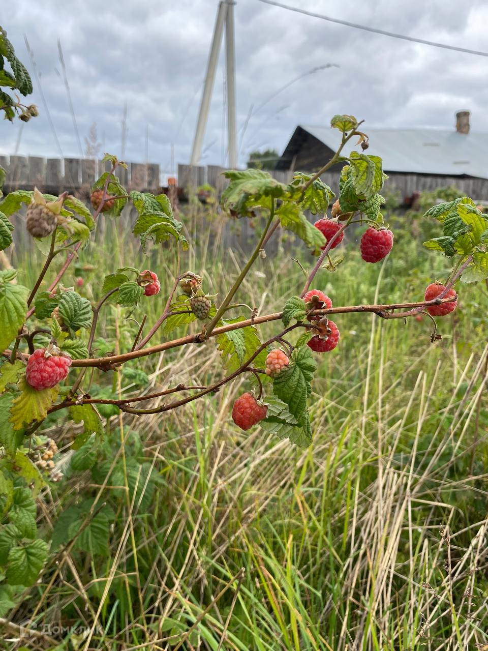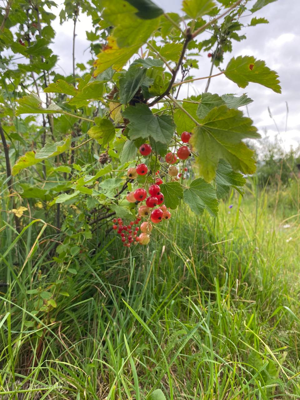На участке растут плодовые деревья - яблони, вишня, кусты красной, черной смородины, малины, крыжовника.
