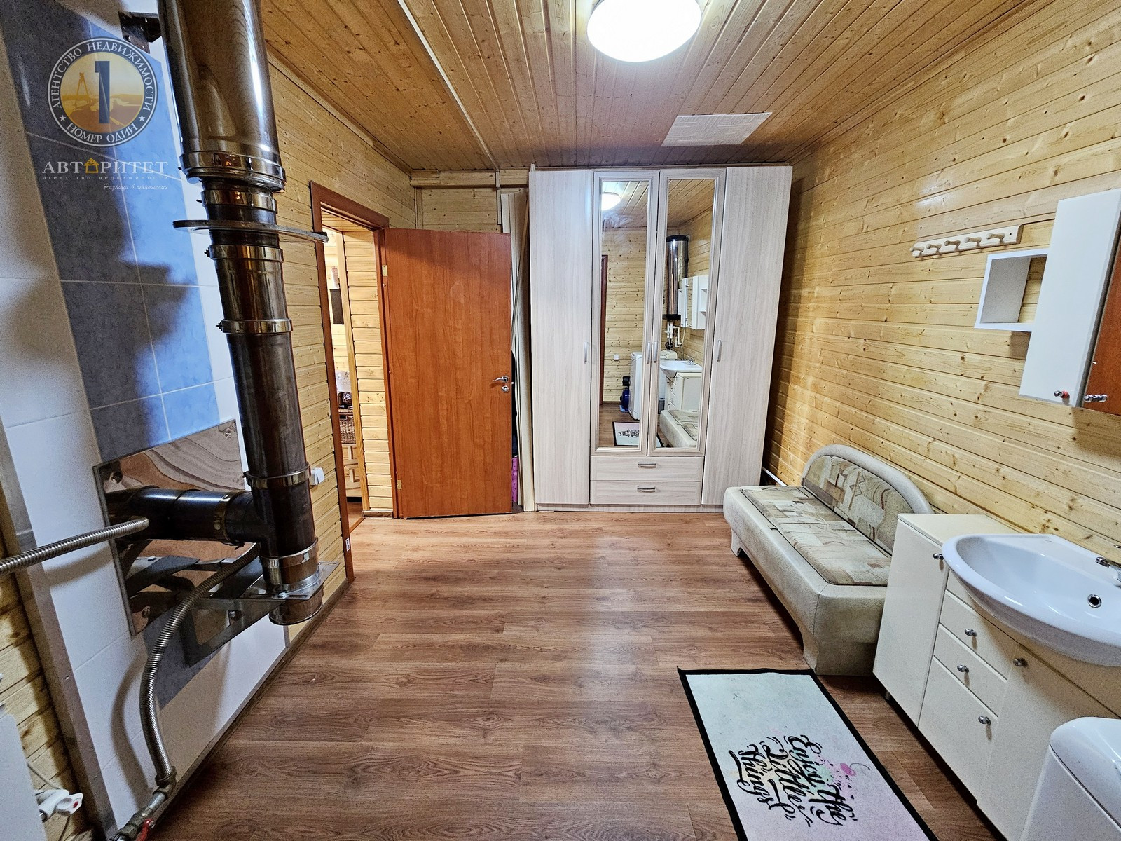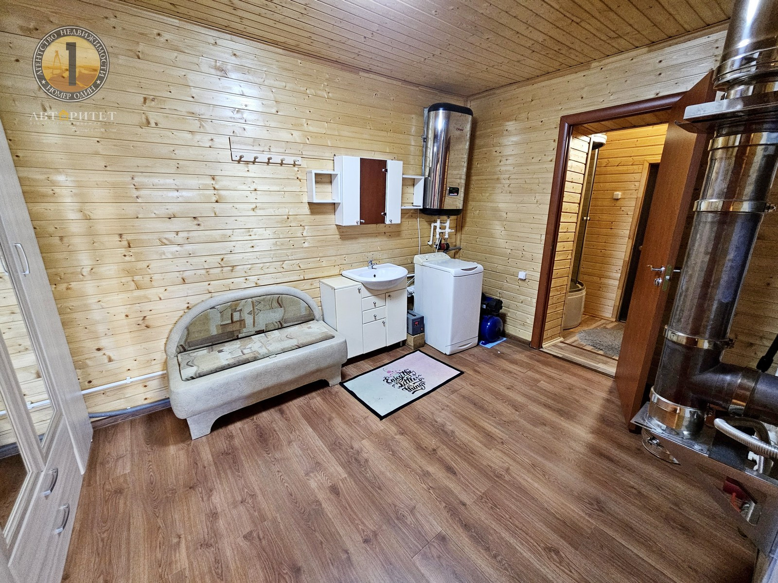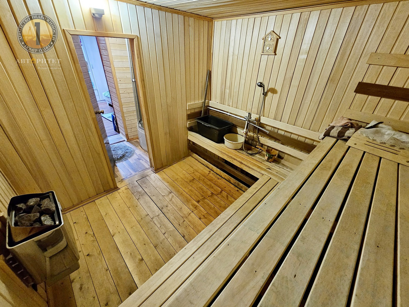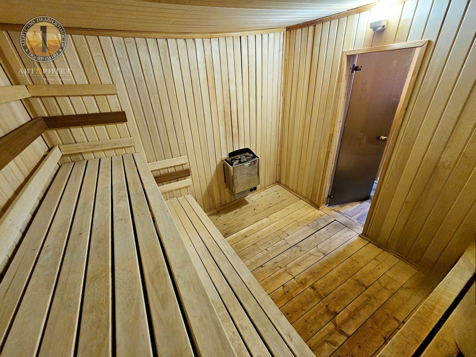 - В доме имеется большая сауна (6,9 м2), стены выложены из кирпича, пол бетонная стяжка, обшита вагонкой.
