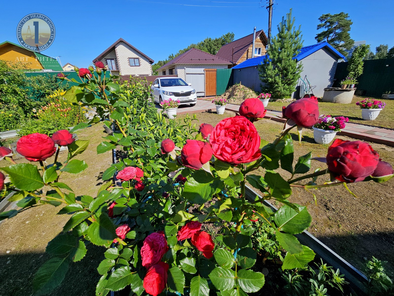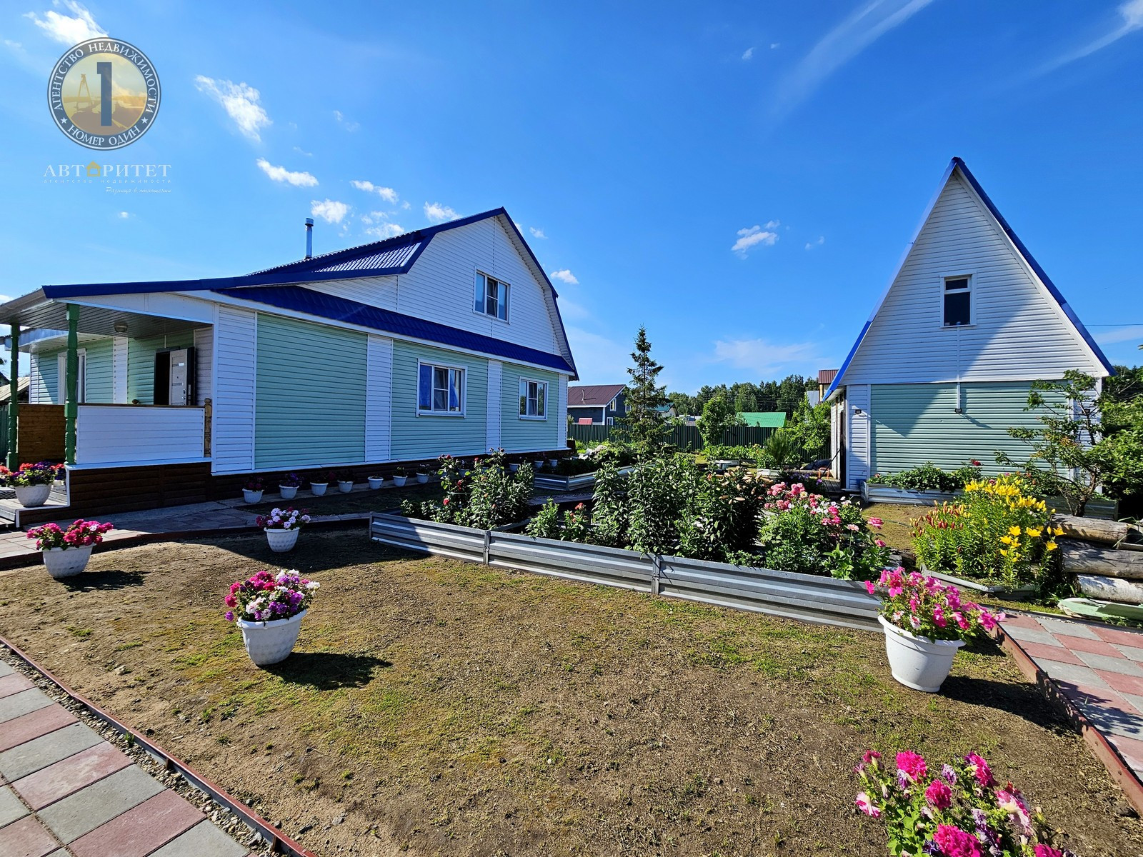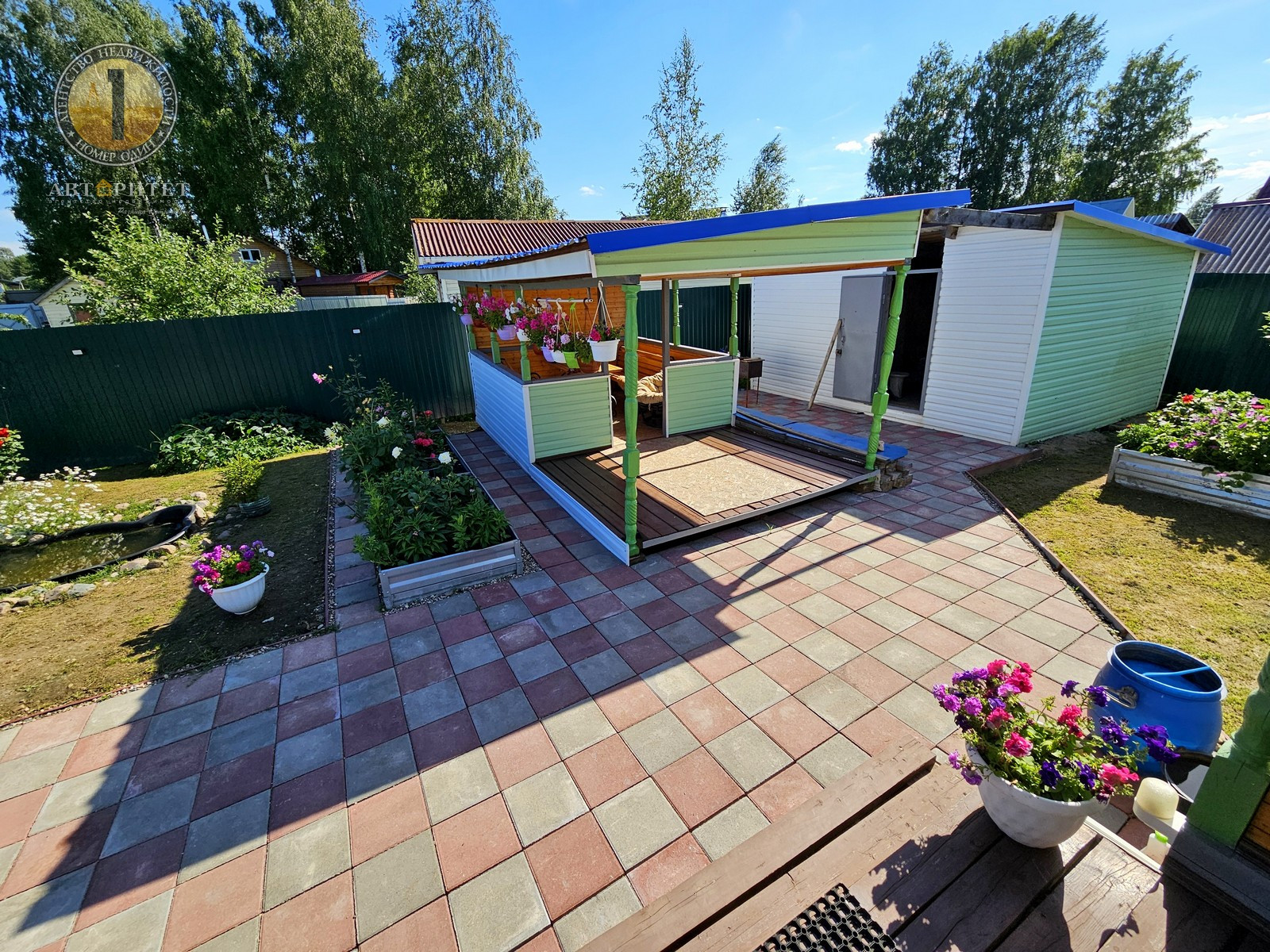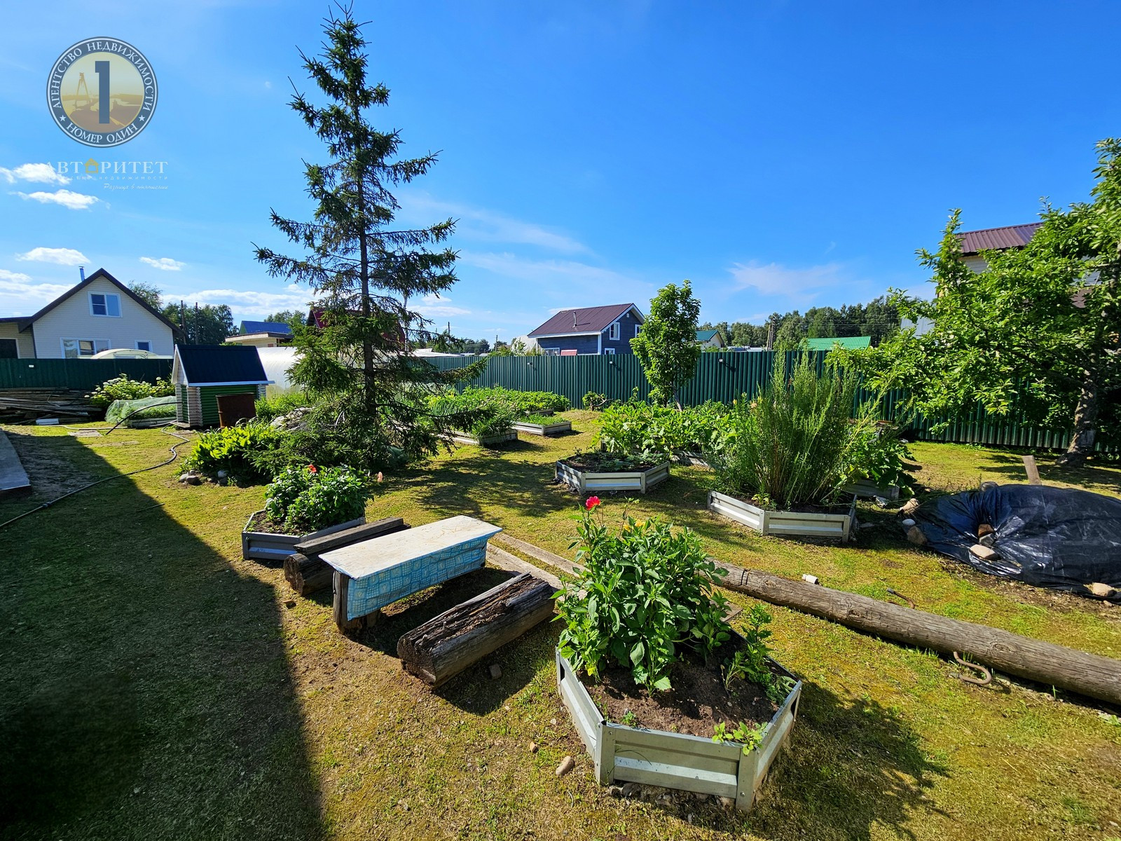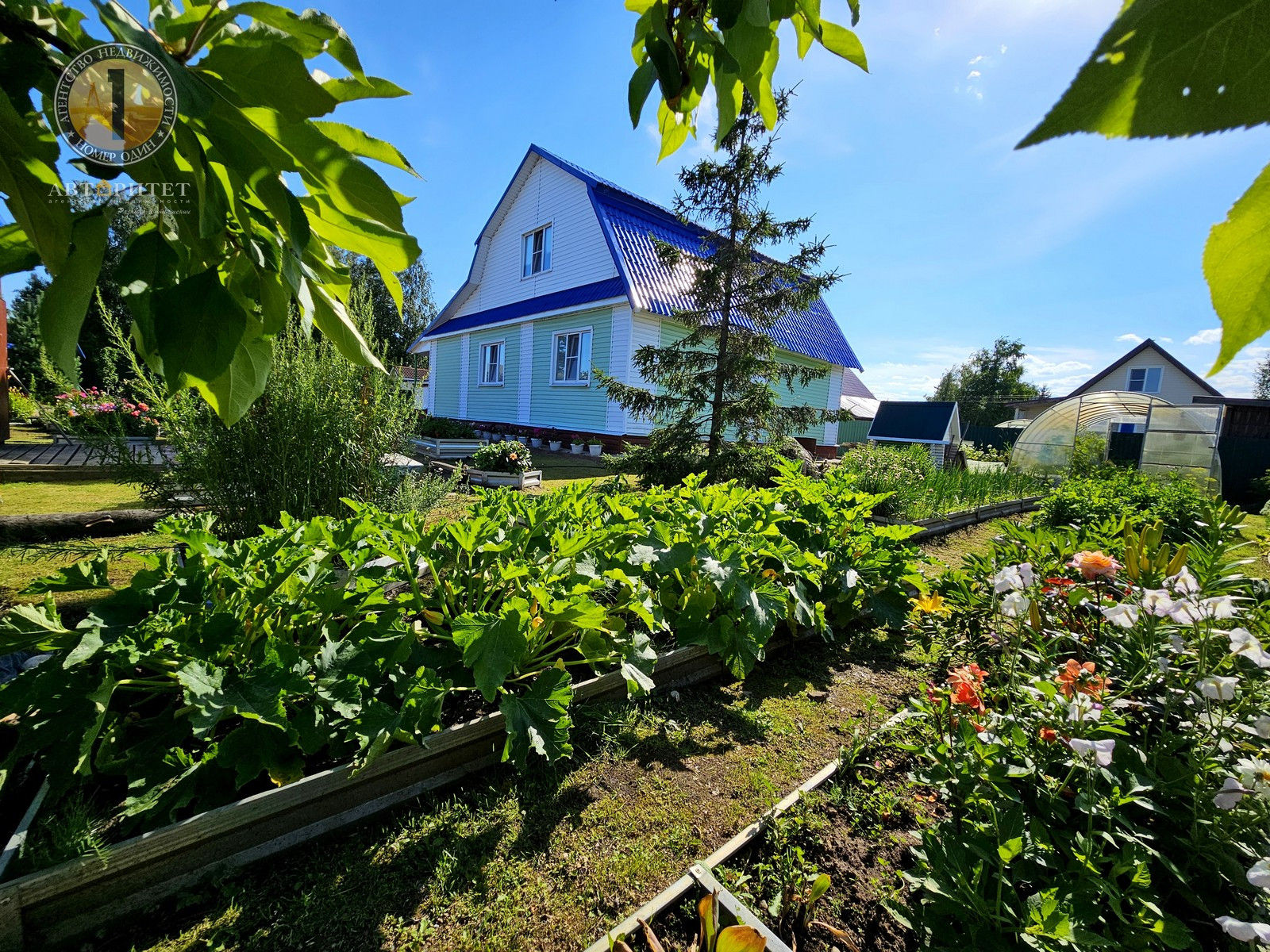 - Множество клумб с яркими и ароматными цветами, теплица и десяток оцинкованных грядок для выращивания овощей;