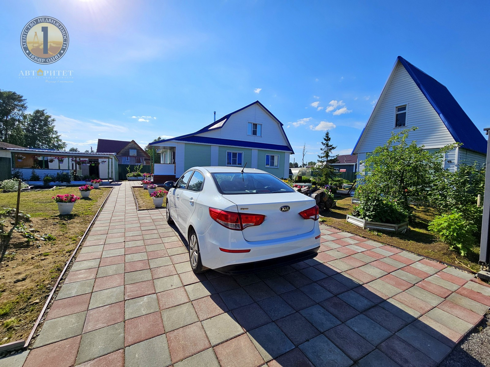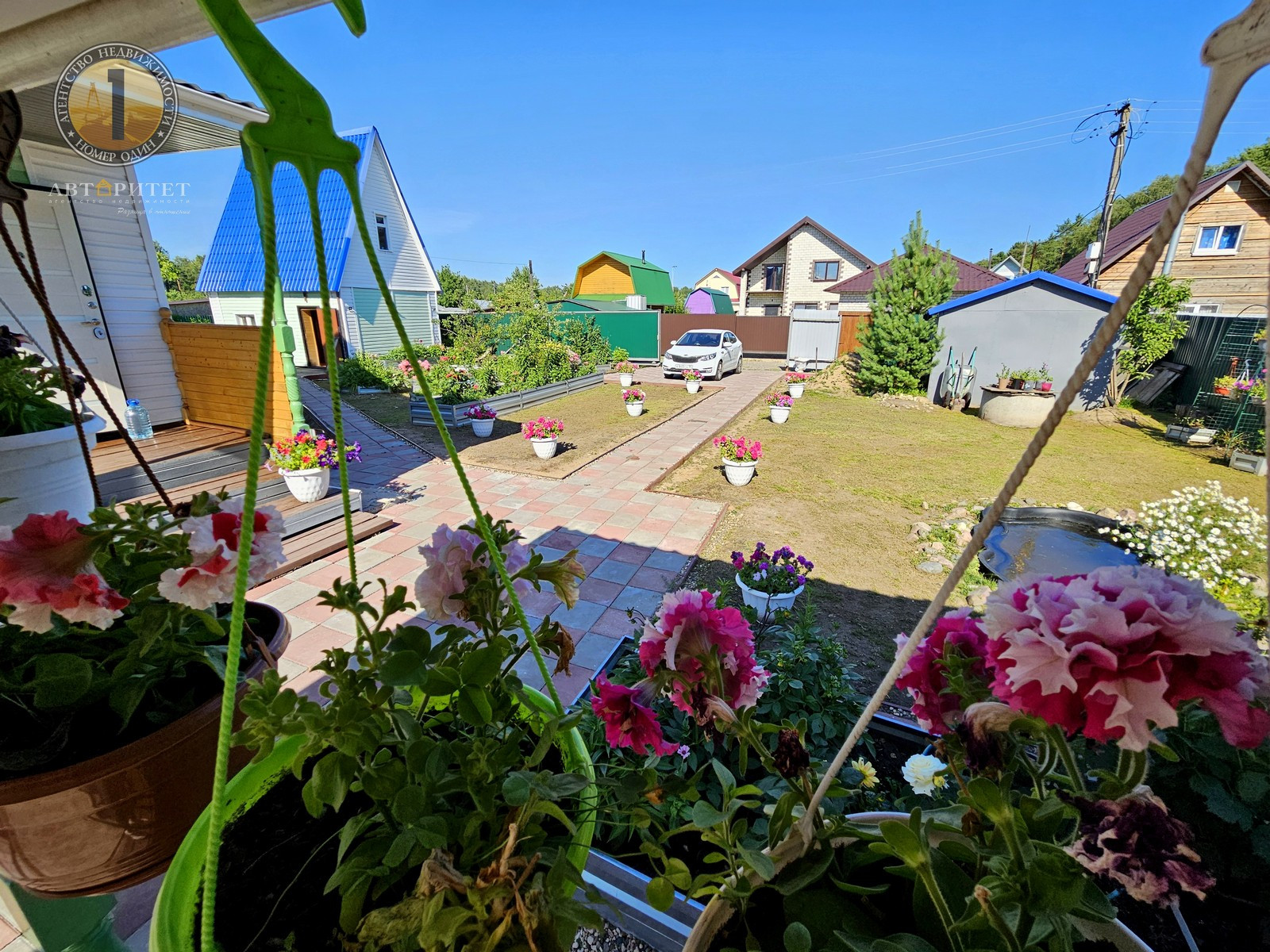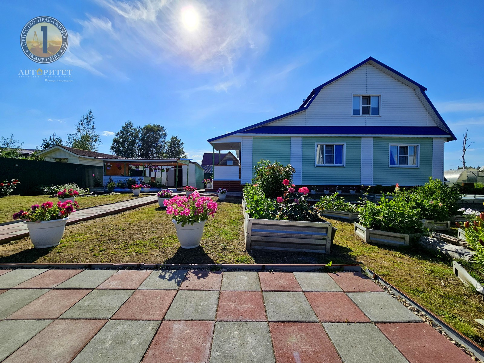 - Двор и тропинки выложены тротуарной плиткой;