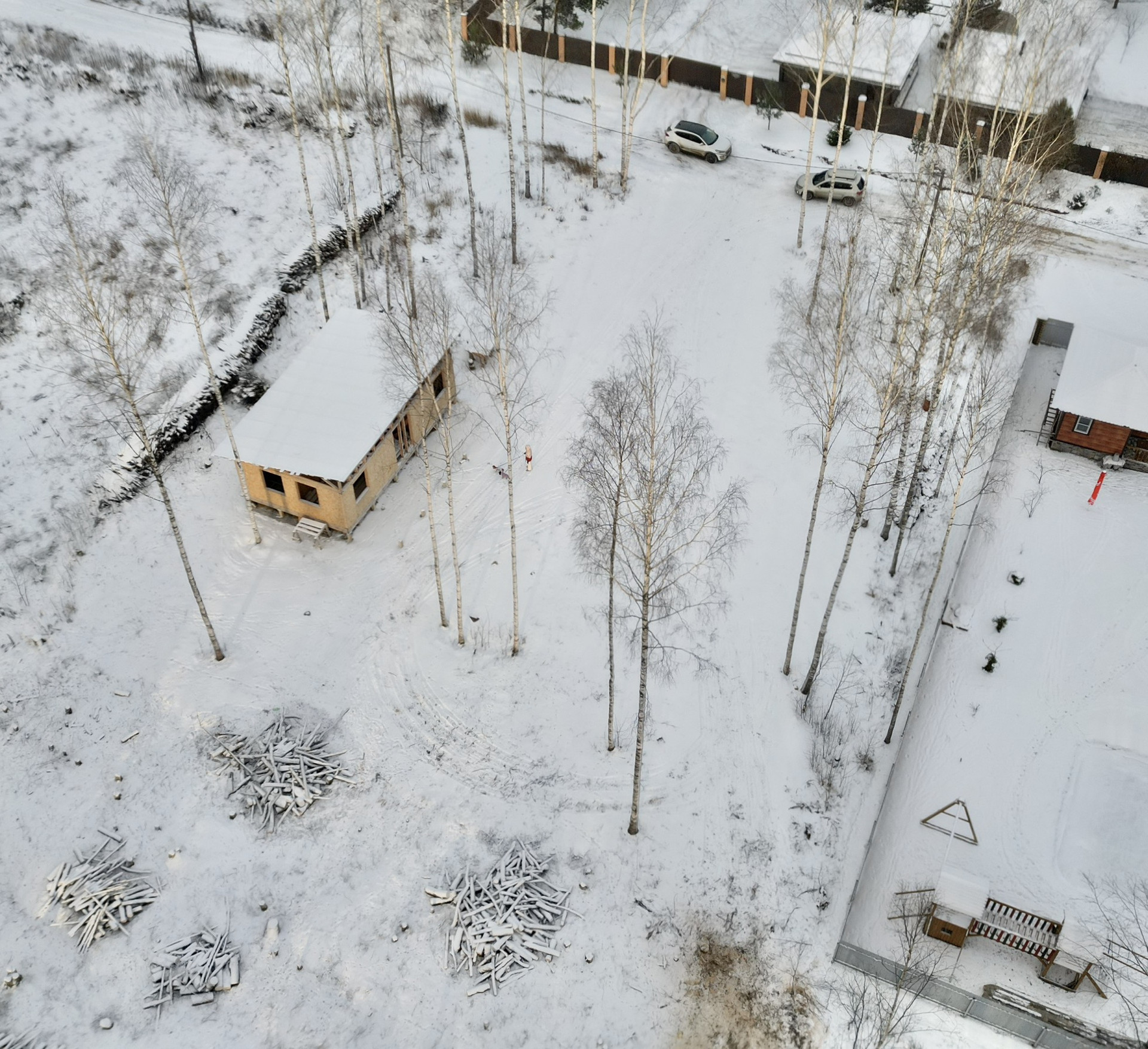 Участок расчищен, точечно оставлены березки и елочки, выполнен заезд на участок, сделана подсыпка. Подробности и смету предоставим при встрече.