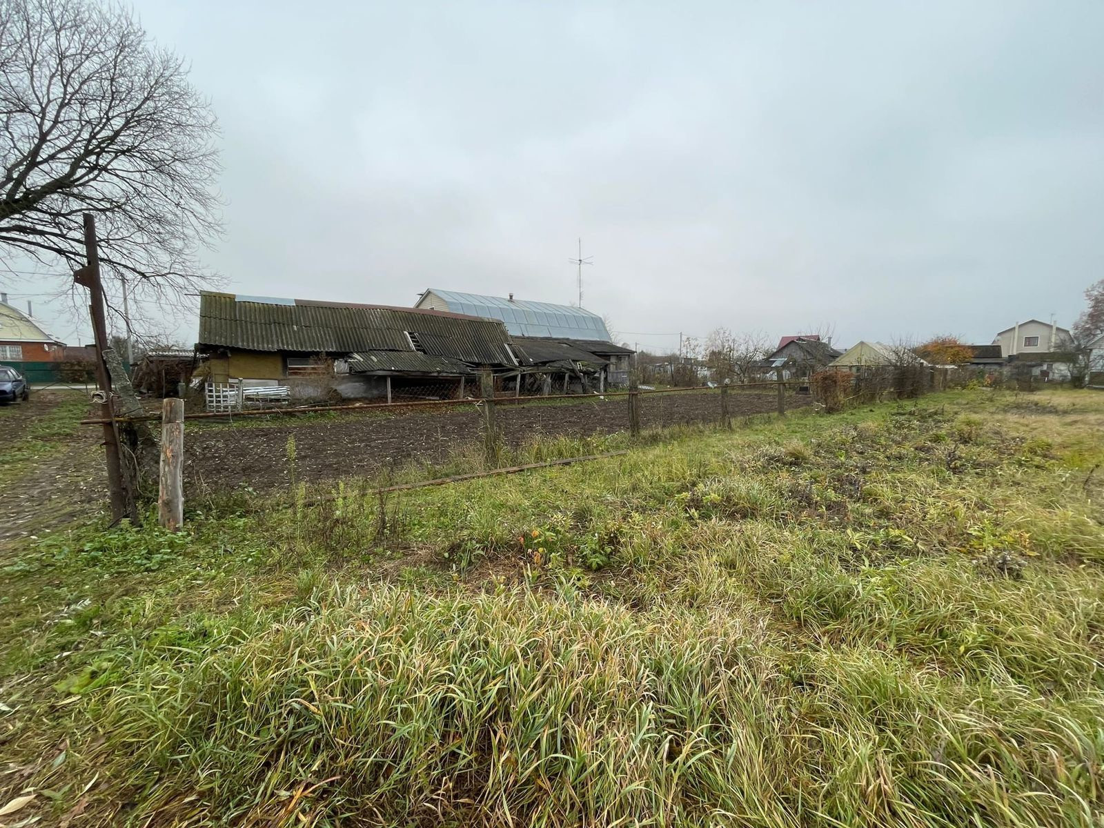 Участок ничем не ограждён, но межевание проведено. Большим плюсом является земля рядом, прилегающая к участку, которую Вы можете использовать в своих целях (например, сделать парковку).