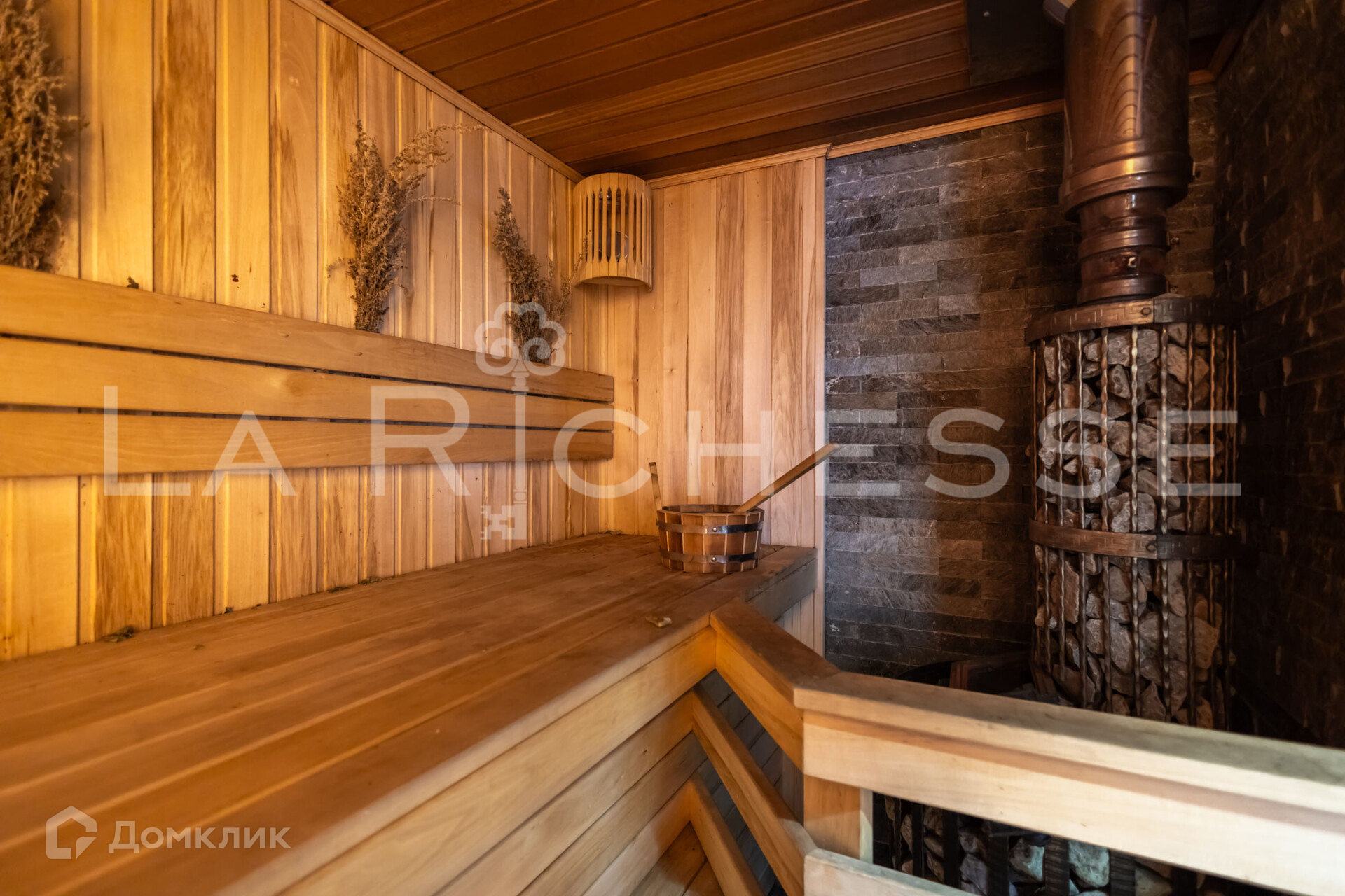 Есть зона бассейна, отдельная зона с сауной и русской печью