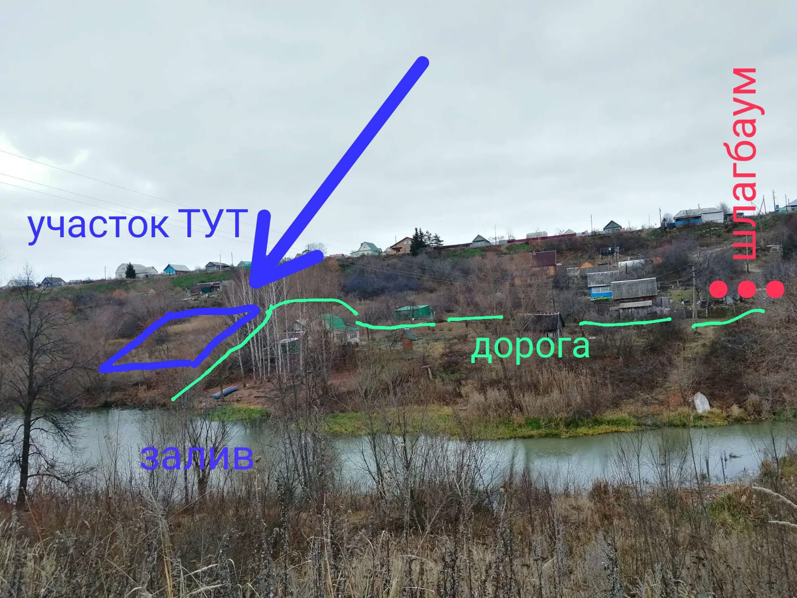 Для ценителей тихой гавани , любителей рыбалки остался 1 ровный участок у залива. Дорога к участку ЕСТЬ