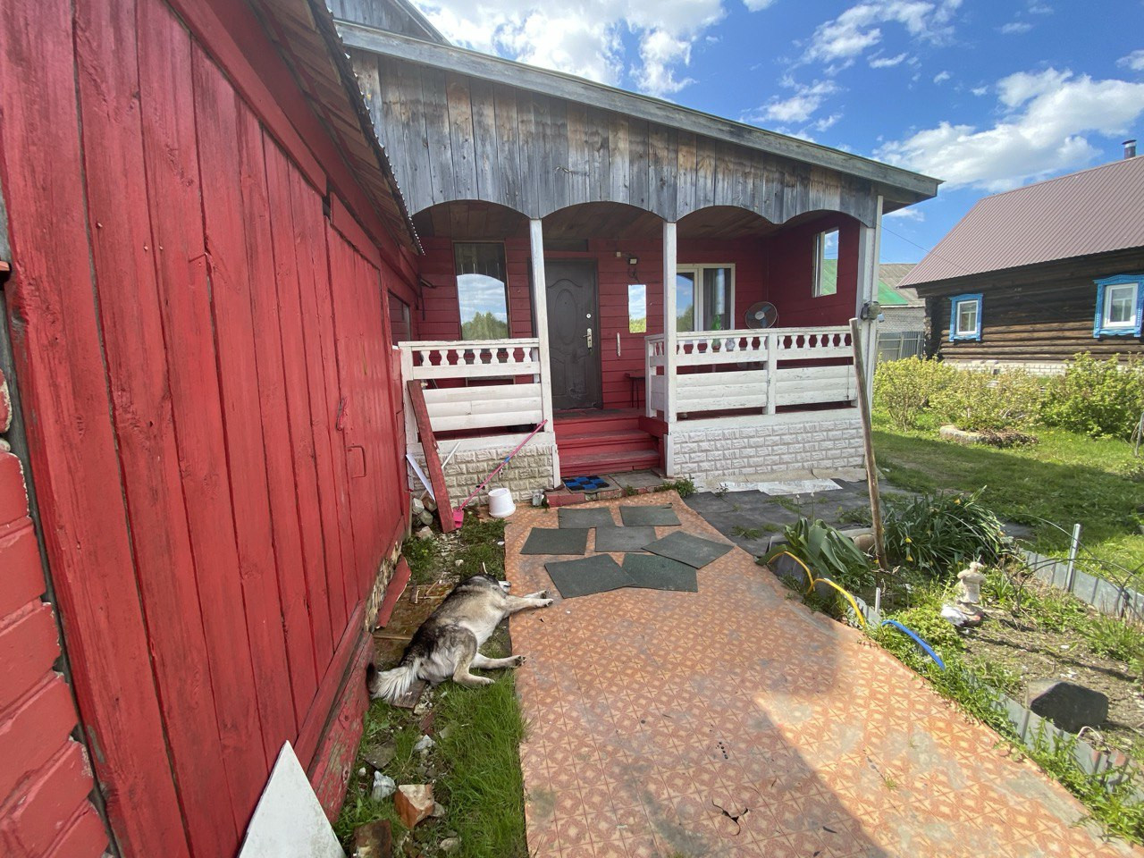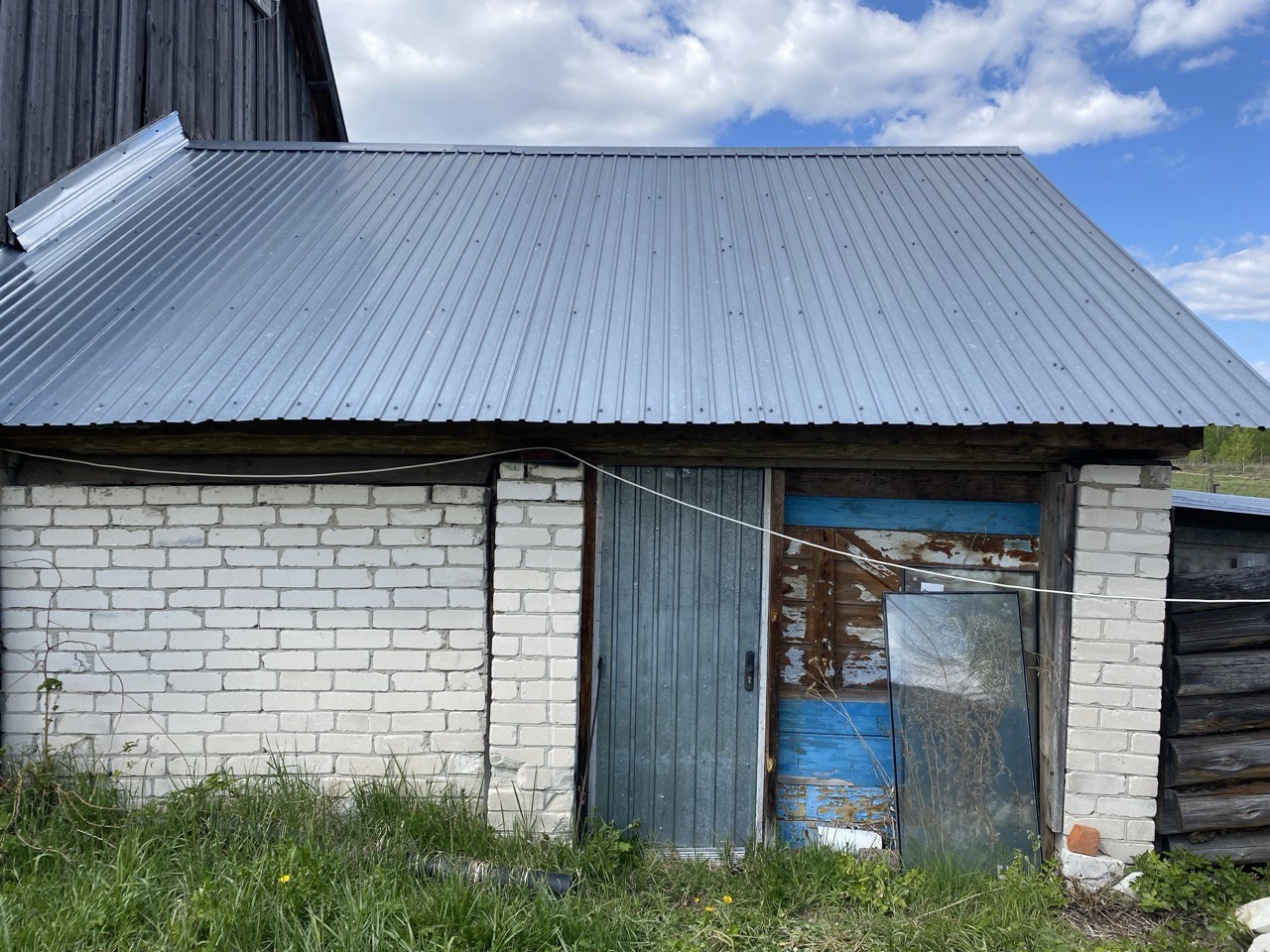 Новая крыша из профнастила, забор - металлический.