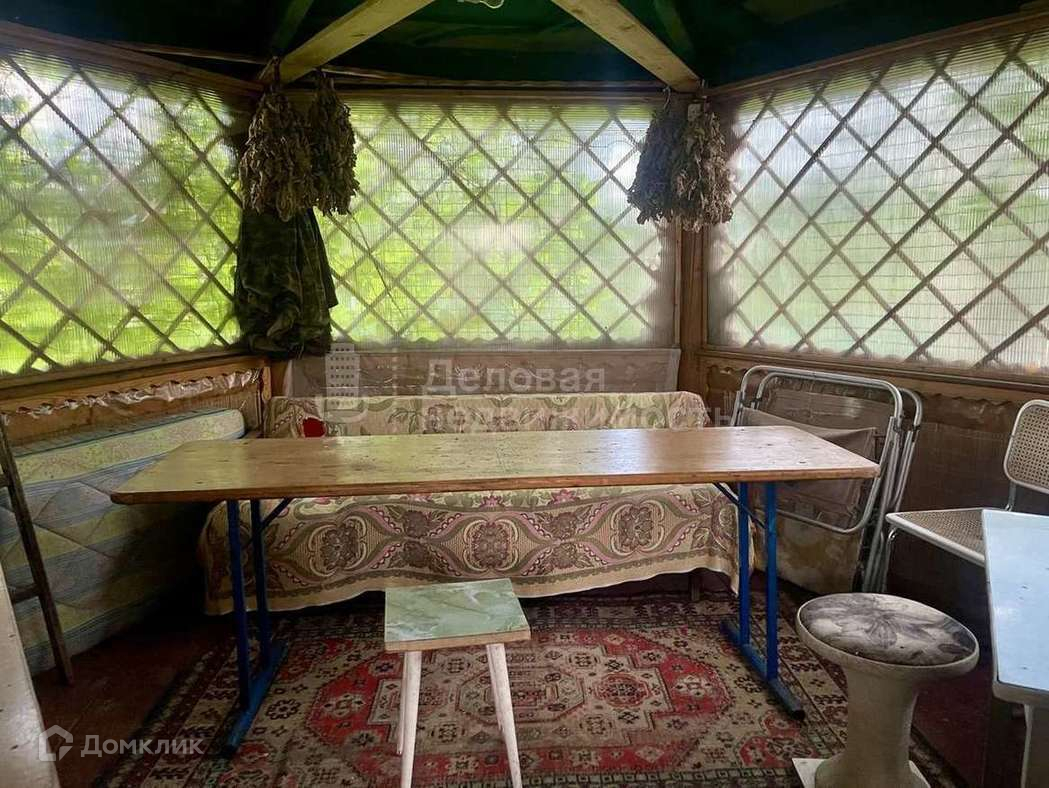 В конце участка стоит бревенчато-щитовая баня. Размер 6х6.