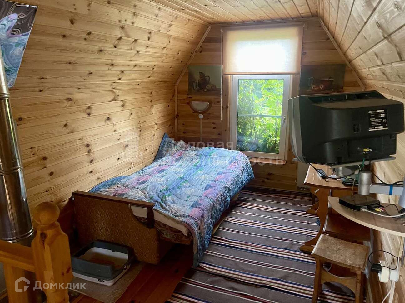 На участке стоит деревянный дом (32,9 кв.м.). На данный момент для проживания не используется.