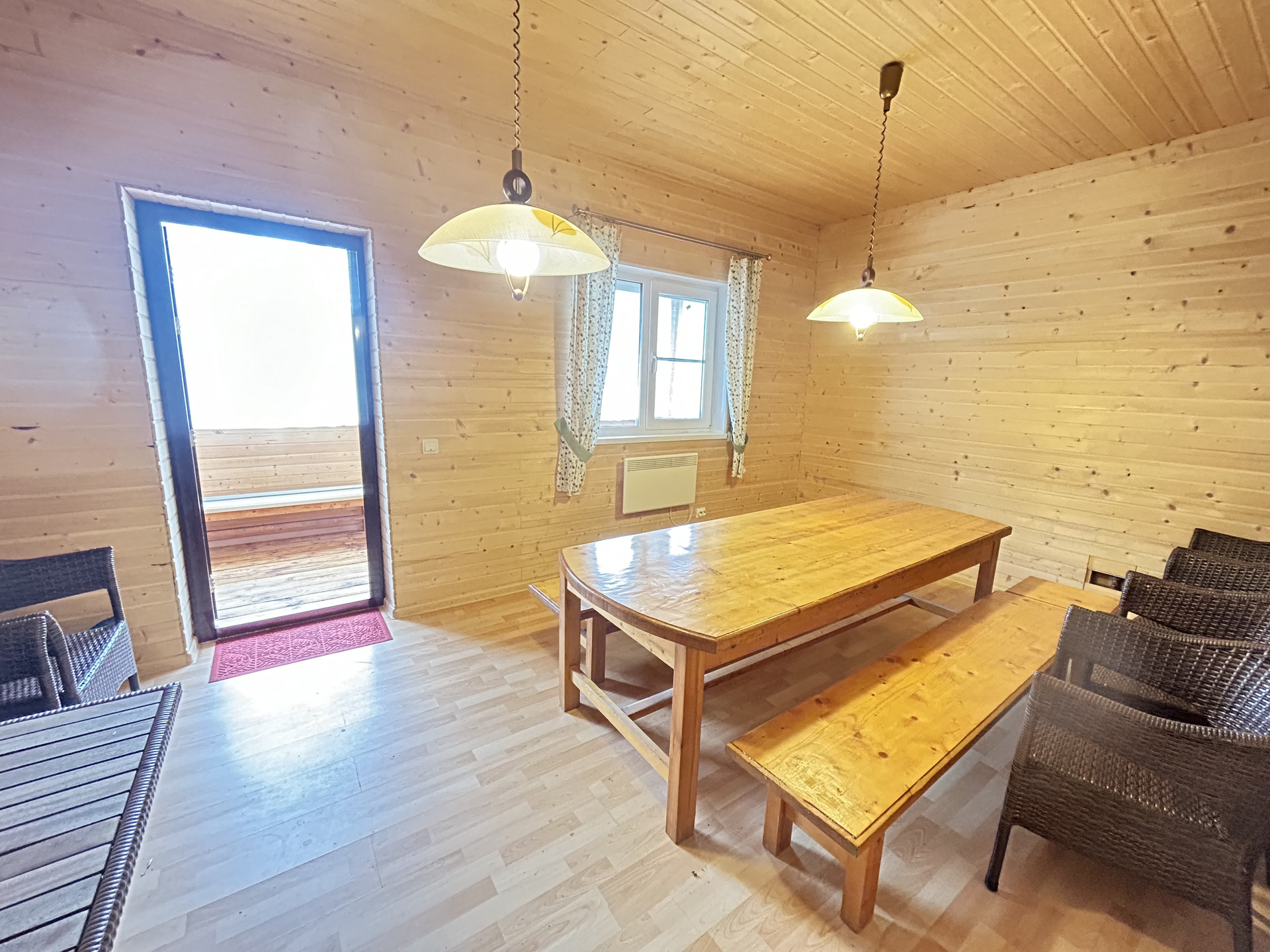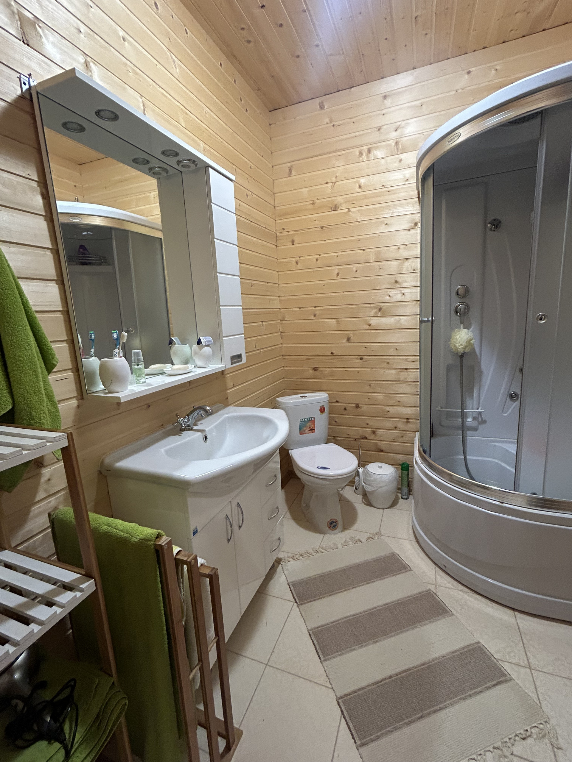 Коммуникации: водоснабжение (скважина), водоотведение (био станция), электричество 15кВт, отопление осуществляется от электрических конвекторов, также в одном из домов установлена Шведская печь. Горячее водоснабжение (накопительные бойлеры).