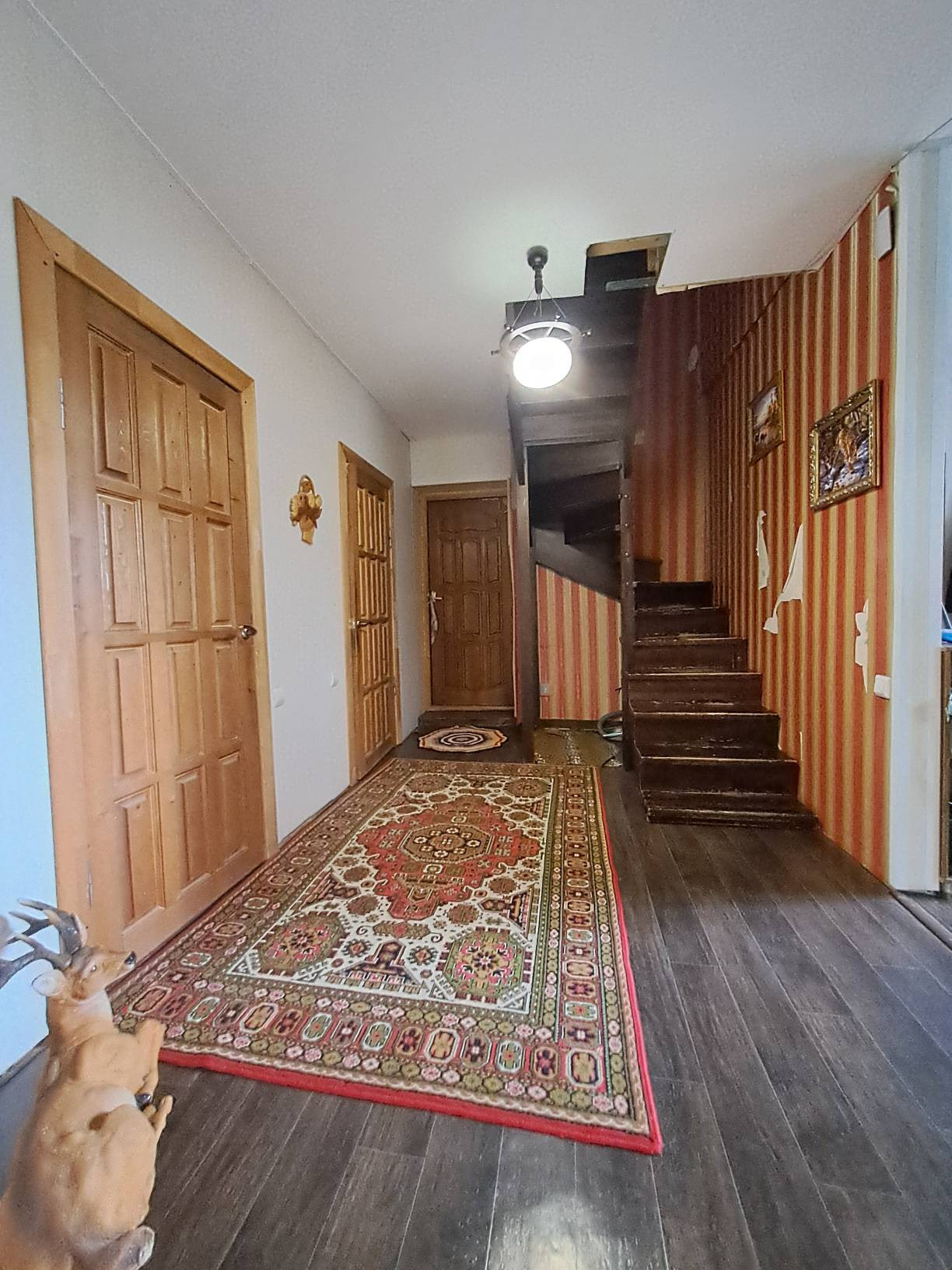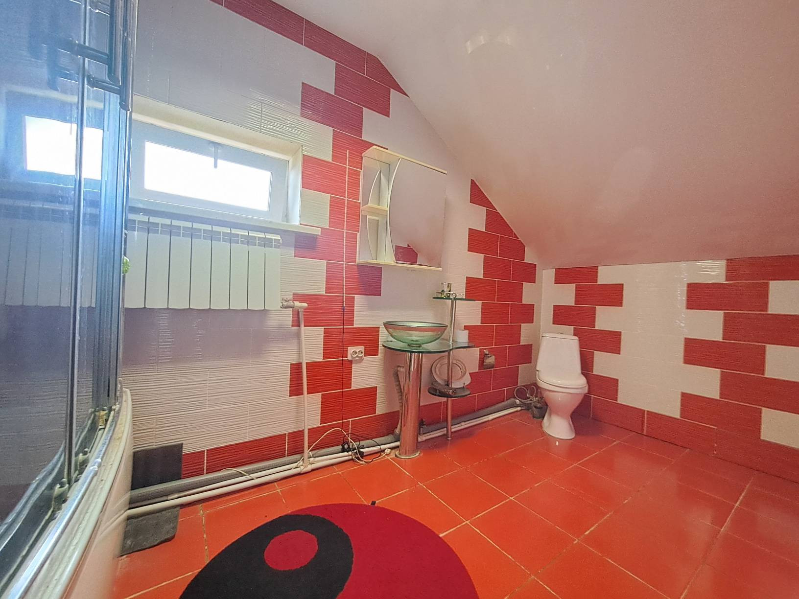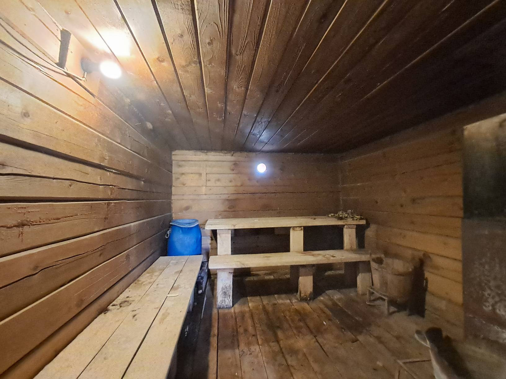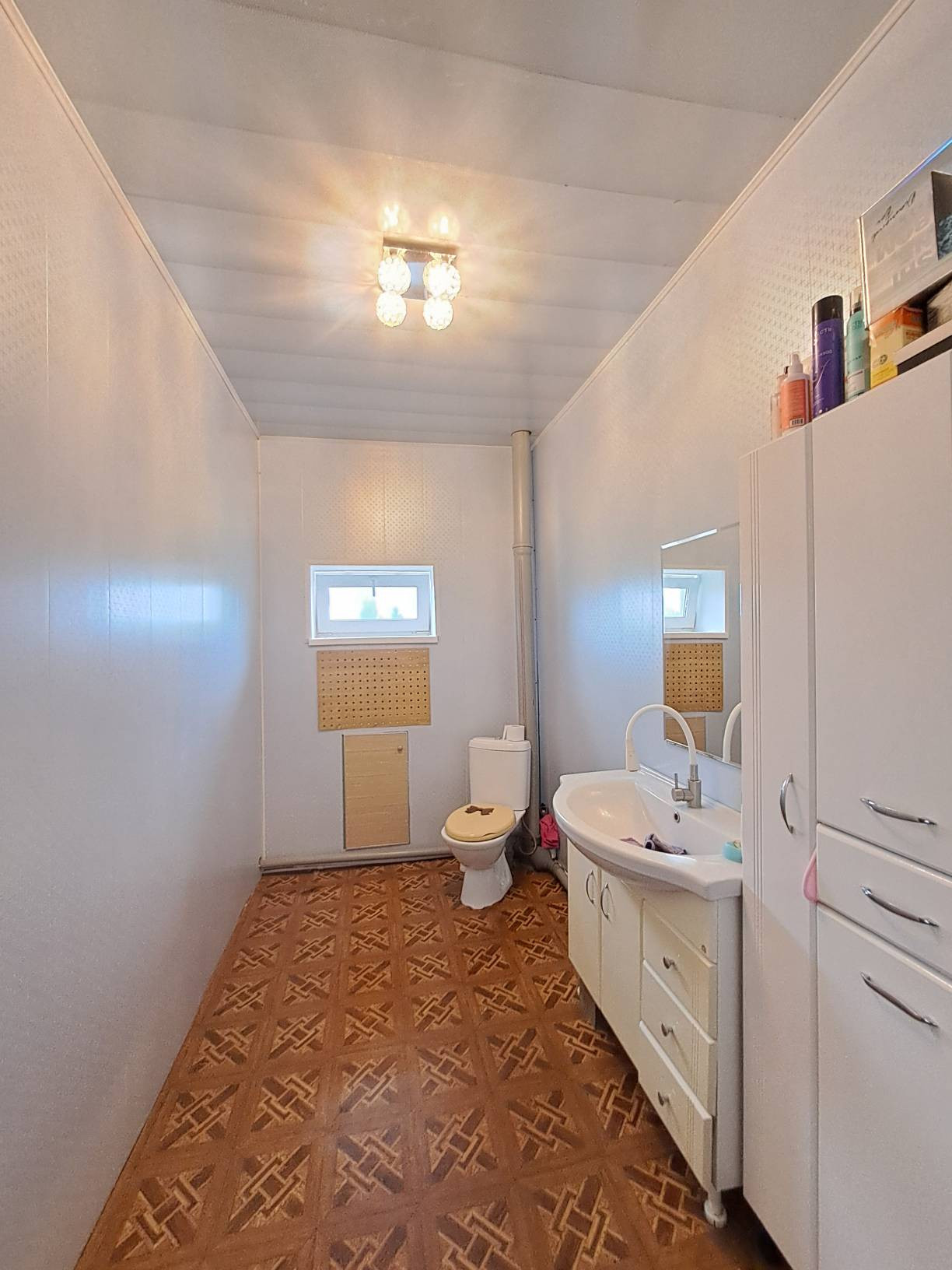 Коммуникации: центральное водоснабжение (!), электроснабжение; отопление - либо электричество, либо твердотопливный котел; канализация - выгребная яма (откачивают 3 раза в год).