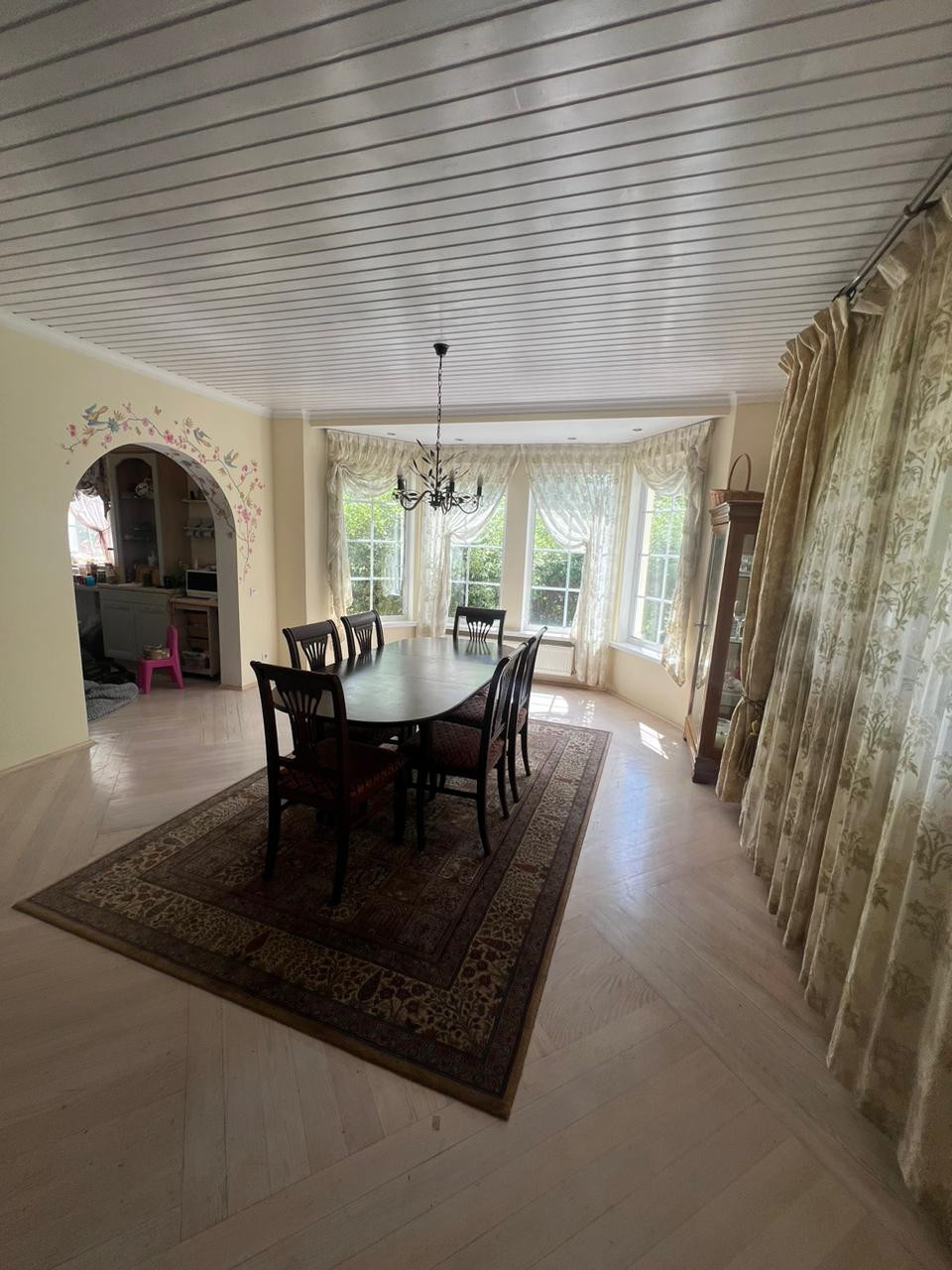 В продаже дом расположенный в живописном месте. Дом для круглогодично проживания, теплый и уютный. В доме 3 спальни, кабинет, два санузла, кухня, большая гостиная, детская игровая комната, кладовые, тех помещения, гараж. Так же на участке расположена баня. Большой облагороженный участок, с газоном, дорожками, забор по периметру, откатные ворота. Все коммуникации сделаны, отопление газовый котел.