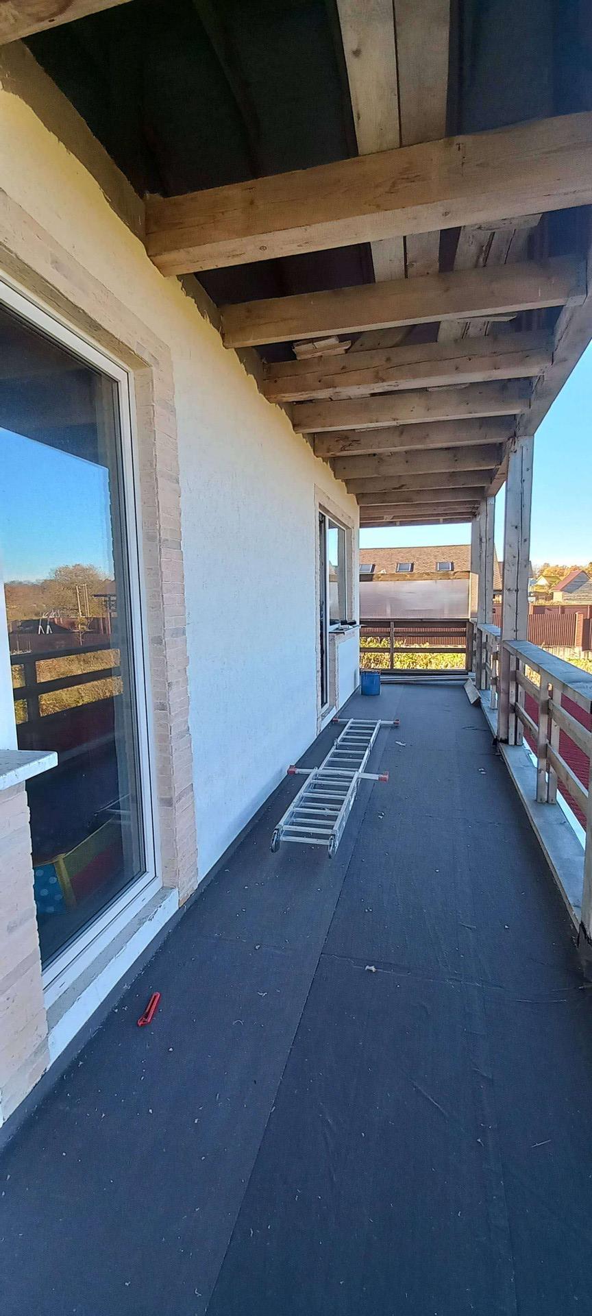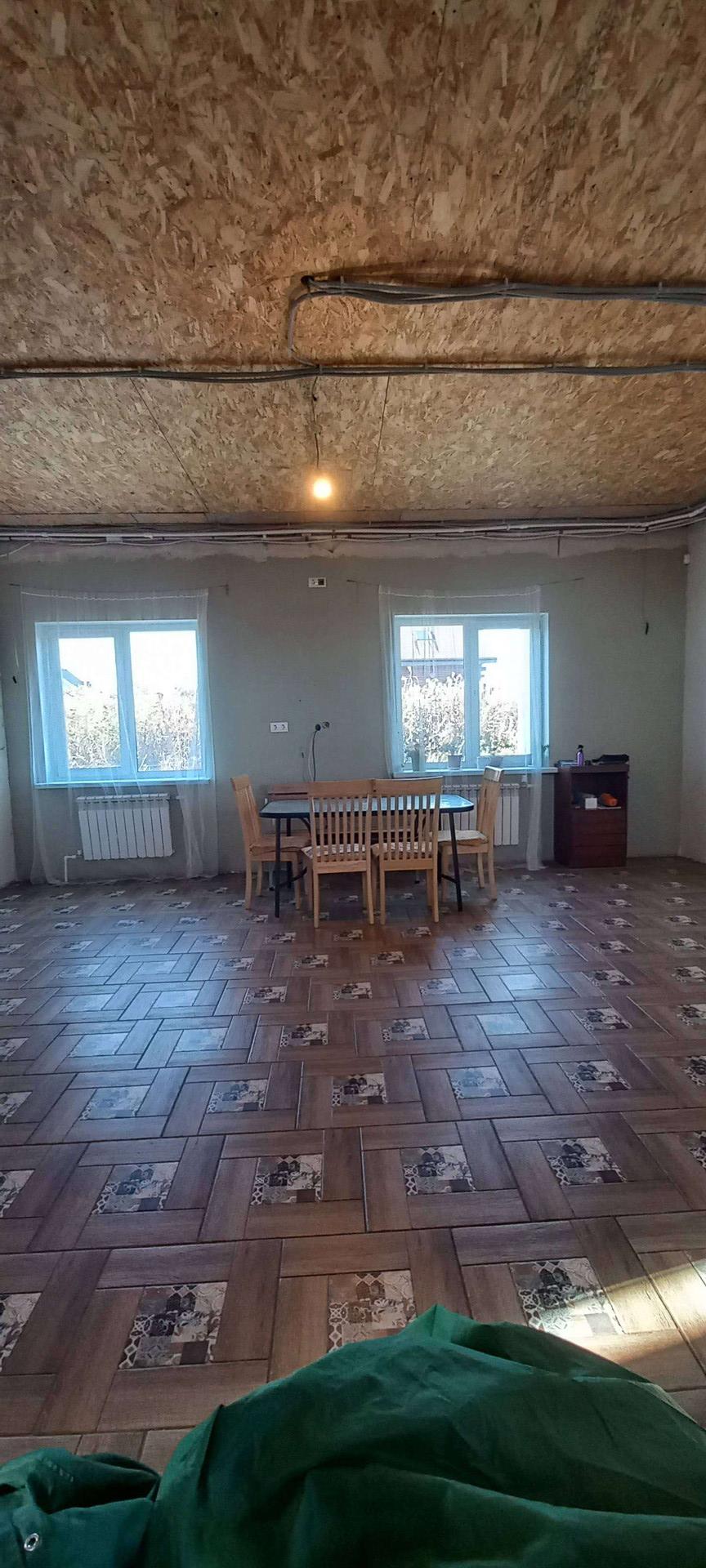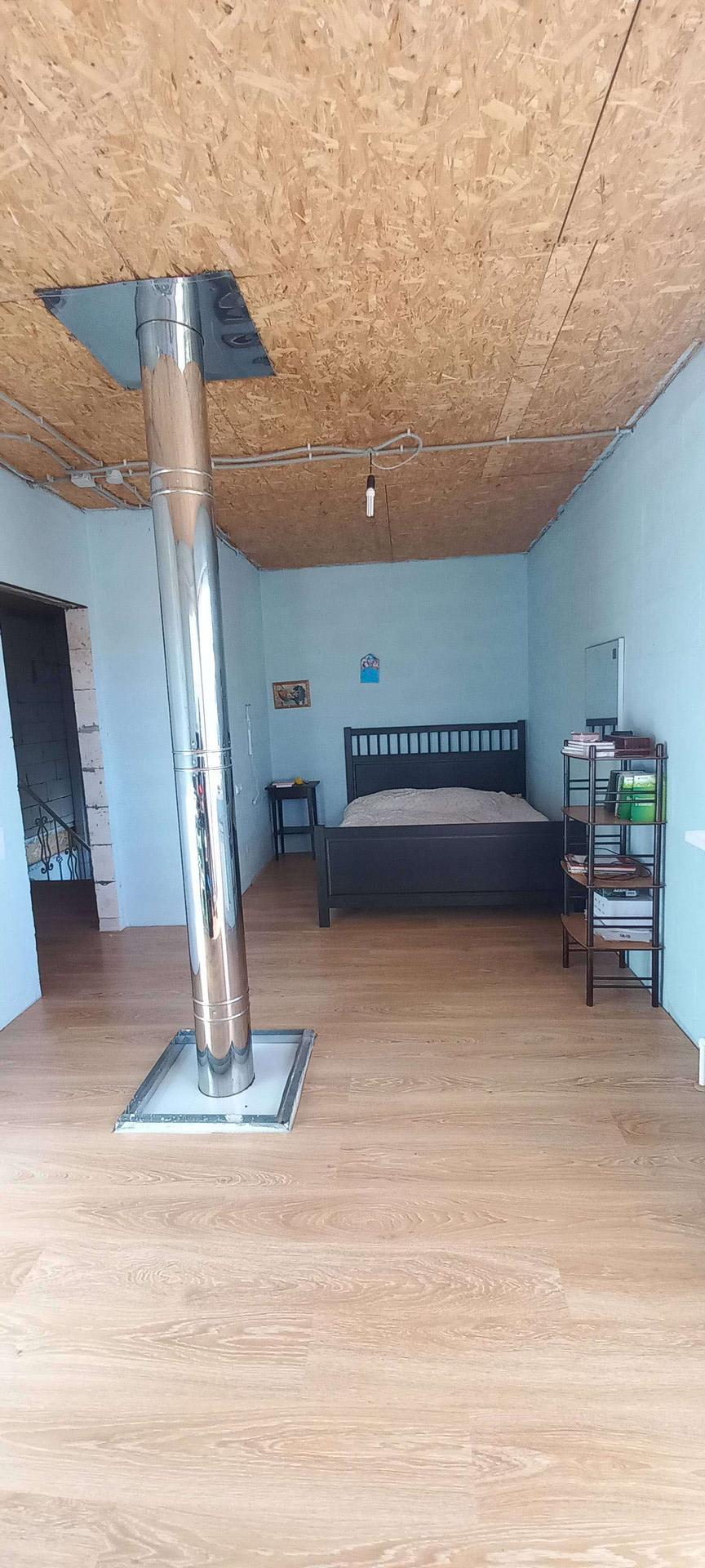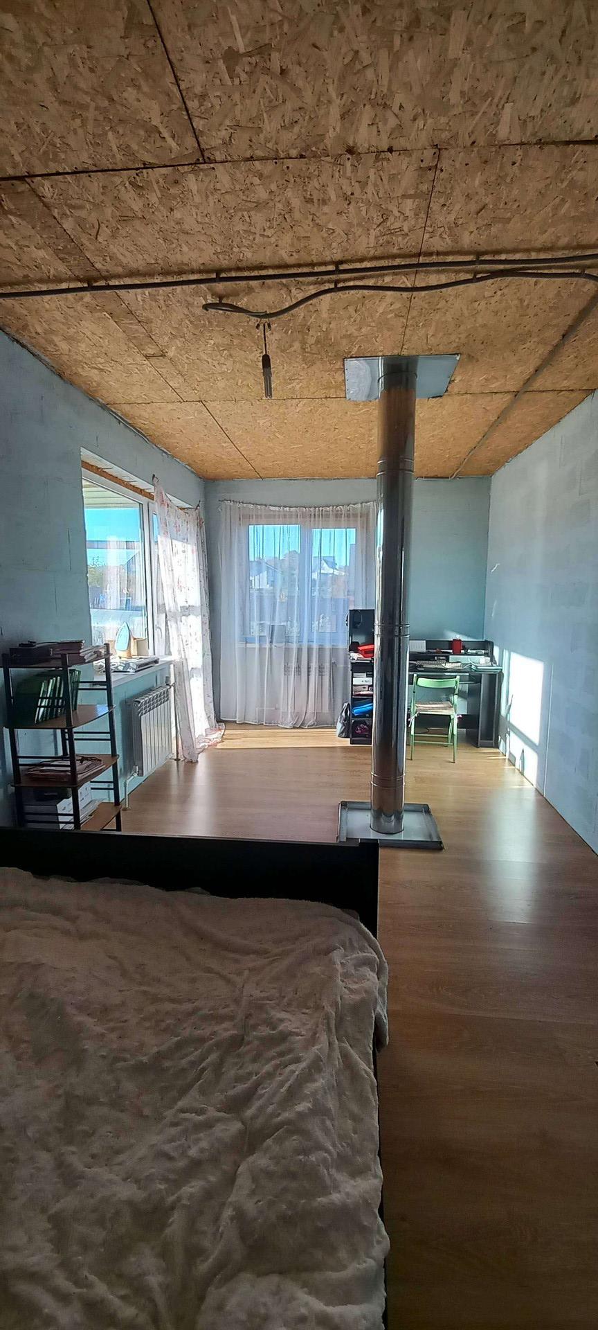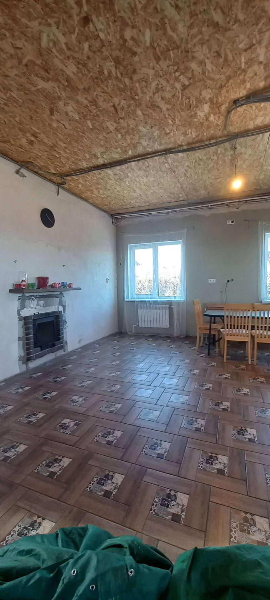 Дом построен из газобетона, фундамент жб плита 300мм., крыша мягкая черепица, терраса, балкон и огромная лоджия, камин. Окна стеклопакеты, на первом этаже пол керамо гранит( тёплый пол), на втором ламинат.