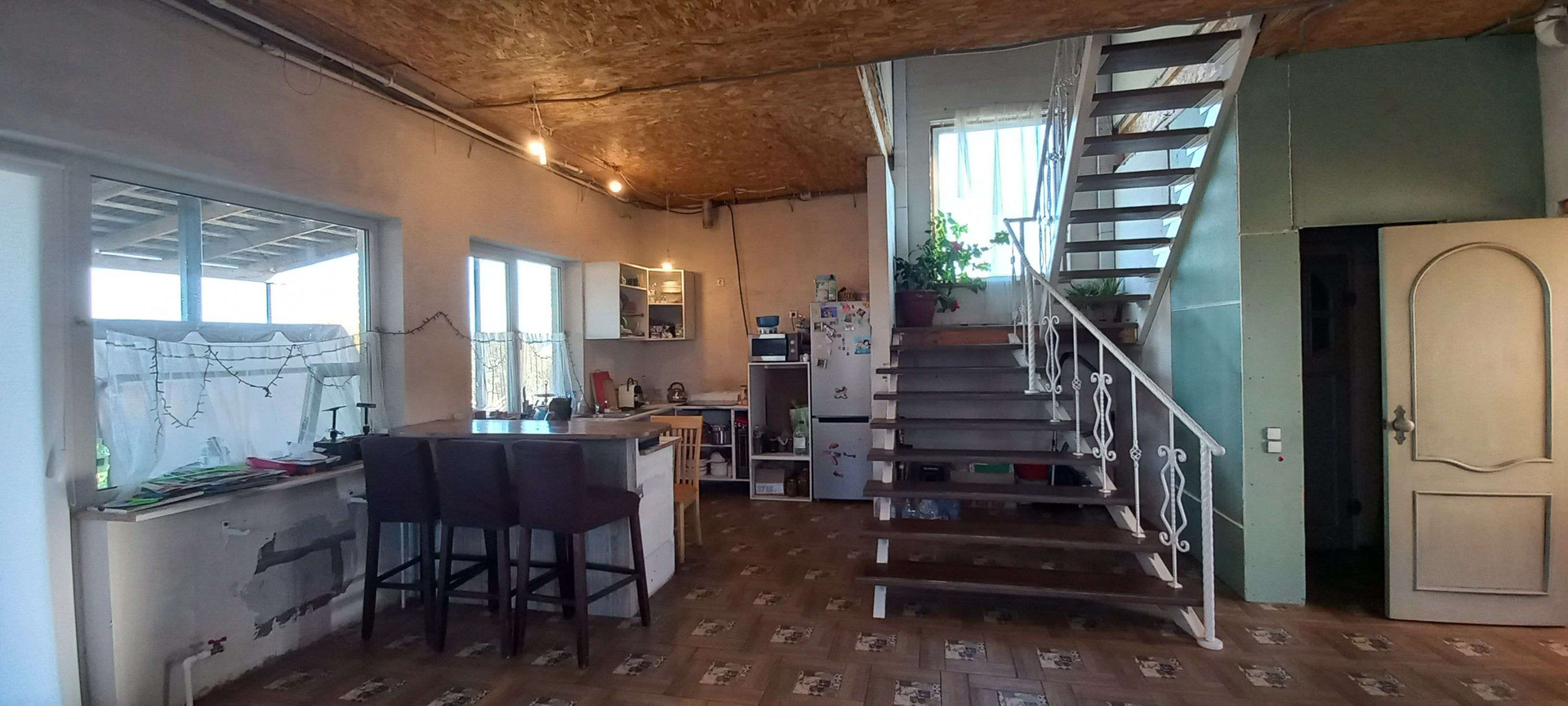 Планировка дома шикарная: на первом этаже прихожая, кухня- гостиная 43м.кв, с/у, сауна, душевая , котельная.