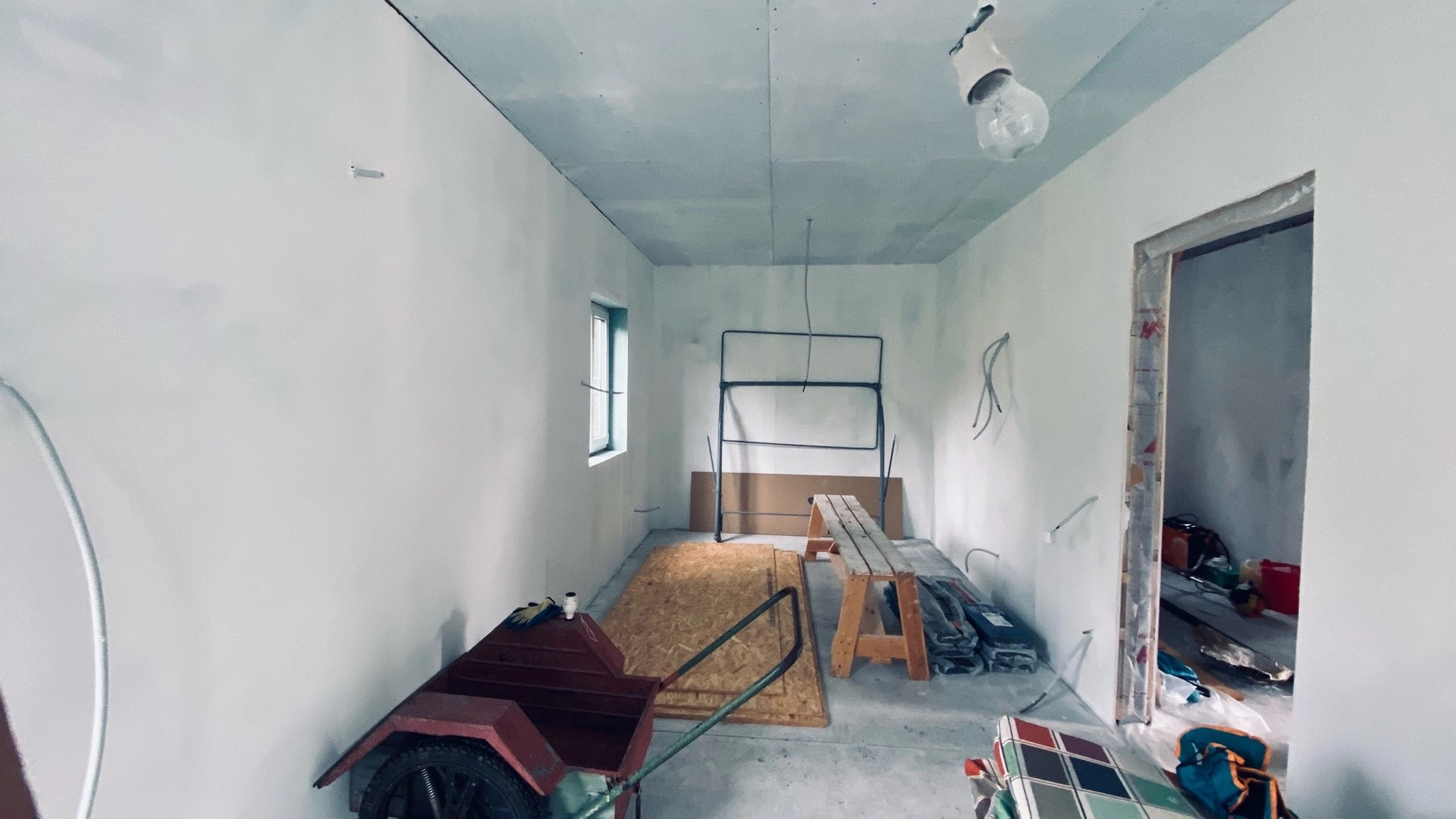 Дoм требует внутрннeй отдeлки, стeны зaшиты гипcoкapтoнoм и чacтично oштукатурены.