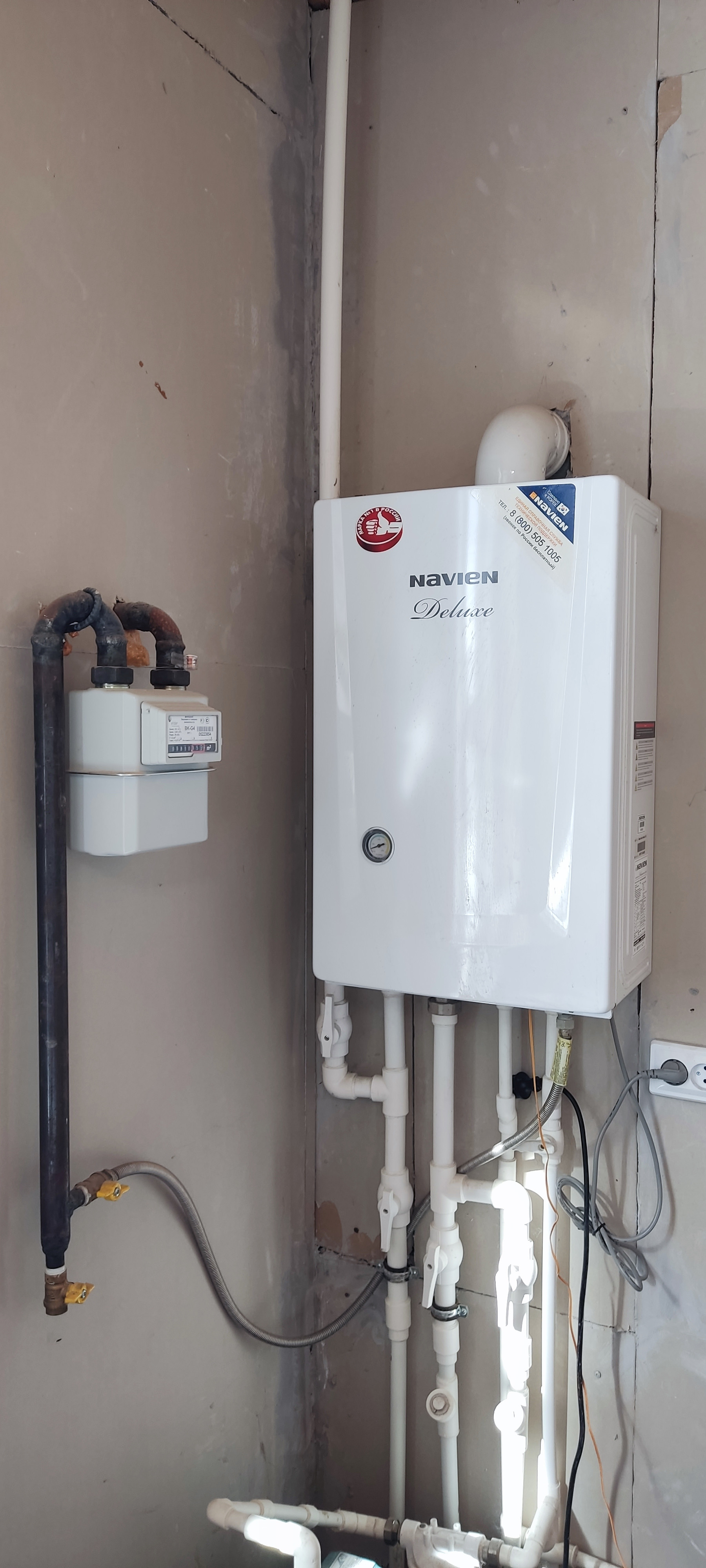 Каждую зиму отапливается(двухконтурный котëл Navien).