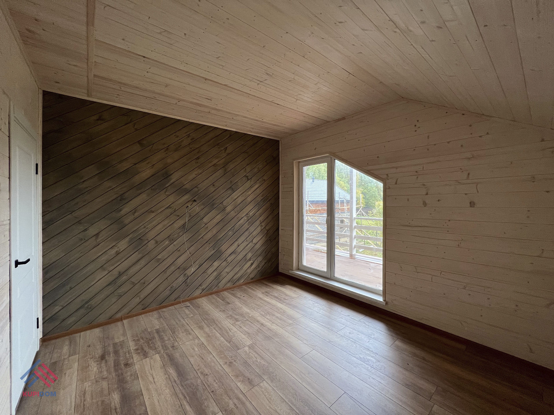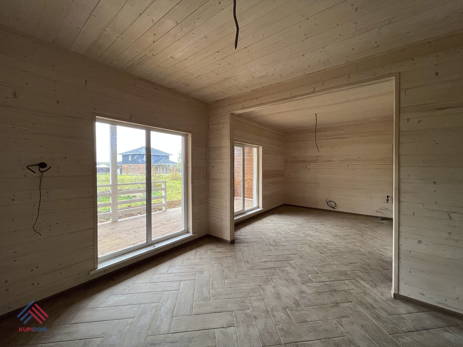 1 этаж - прихожая, котельная, кухня-гостиная с выходом на террасу, комната, санузел;