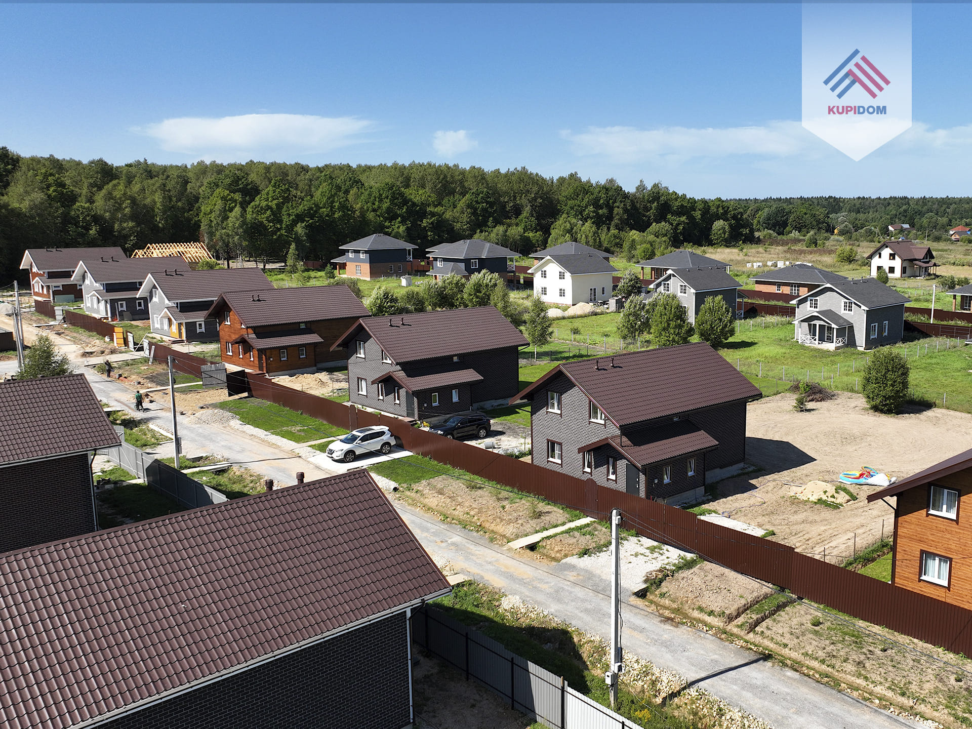 Удобный круглогодичный подъезд, асфальтированная подъездная дорога от шоссе до поселка.