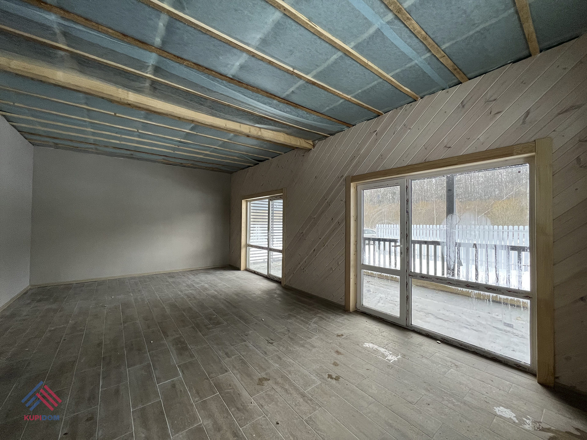 1 этаж: крыльцо-тамбур, прихожая, котельная, кухня - гостиная, сан.узел, 2 комнаты.