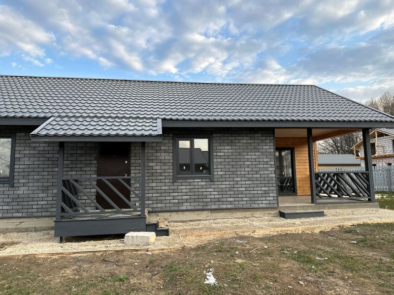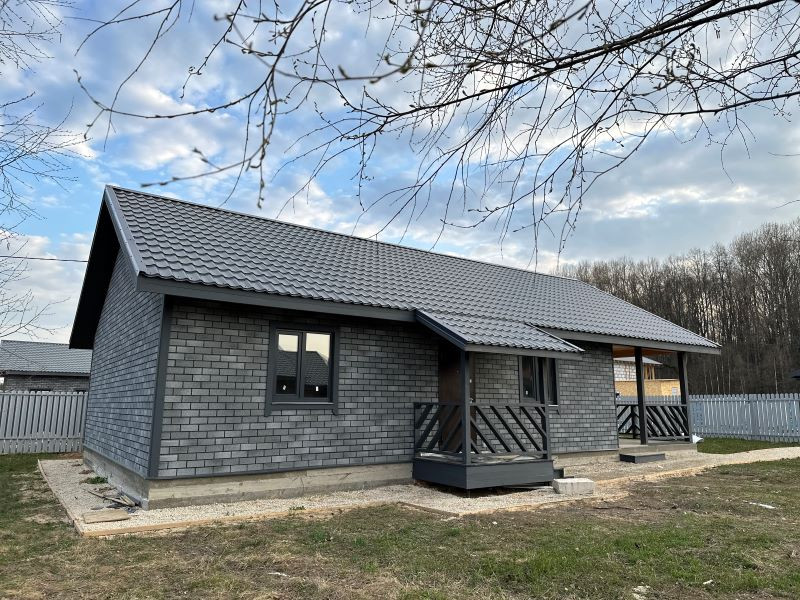 Дoм из пеноблока, c внутренней и внeшней отдeлкой для круглогодичного проживания. Земли ИЖС. Деревня.