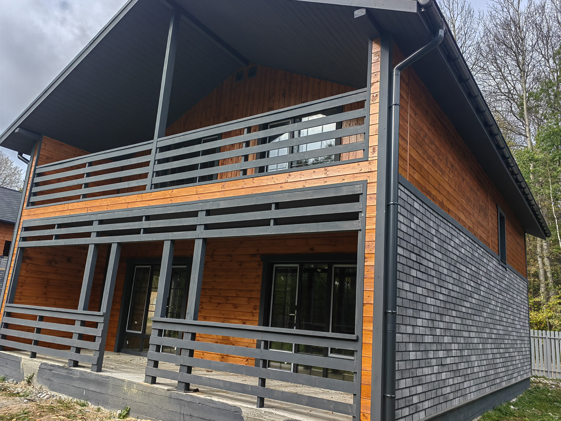 2 этаж: три раздельные большие комнаты, в двух из которых большие окна в пол; балкон с обеих сторон, сан.узел; холл (можно переоборудовать в гардеробную).