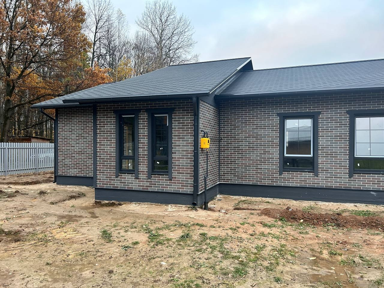 Фундамент – монолитный, армированный, с тёплым полом по всей площади. Материал стен - газоблок с утеплением. Наружная отделка: АМК панели; Кровля - металлочерепица. Установлена водосточная система.