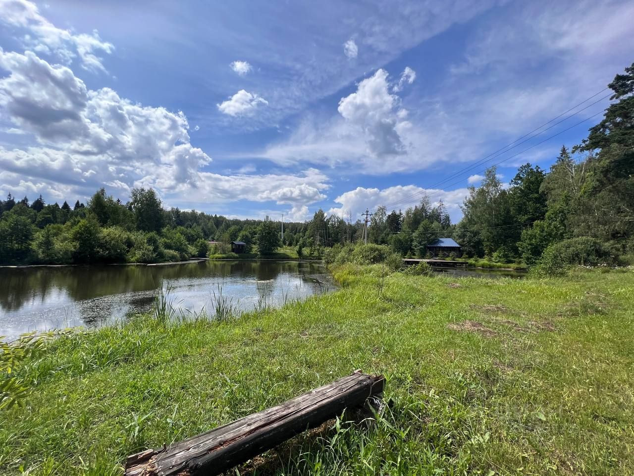 Напротив участка расположен большой пруд, где можно купаться и ловить рыбу.