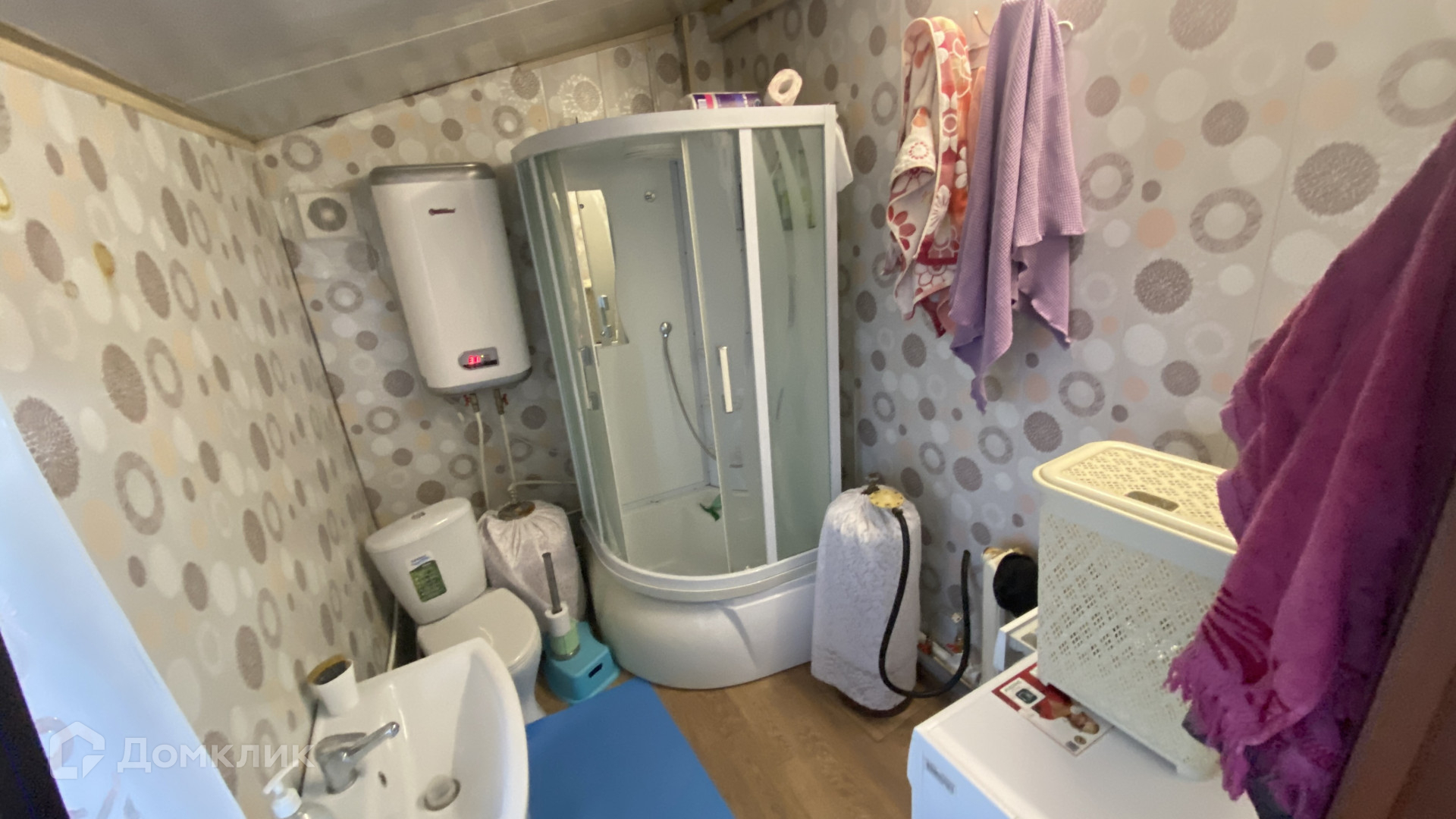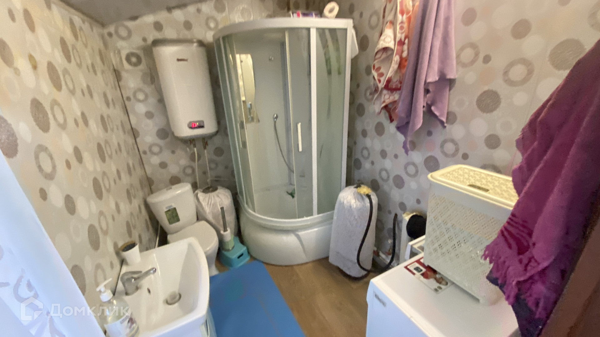 Совмещённый санузел : душкабина, раковина, унитаз.