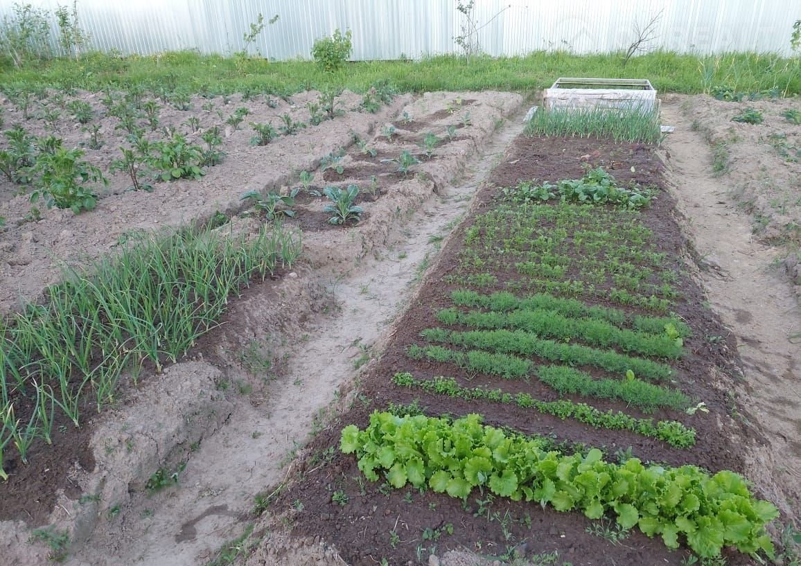 Просторный земельный участок с плодородной почвой, минимально необходимые посадки (картофель, зелень, кустарники), участок по всему периметру огорожен забором из профнастила, откатные металлические ворота.