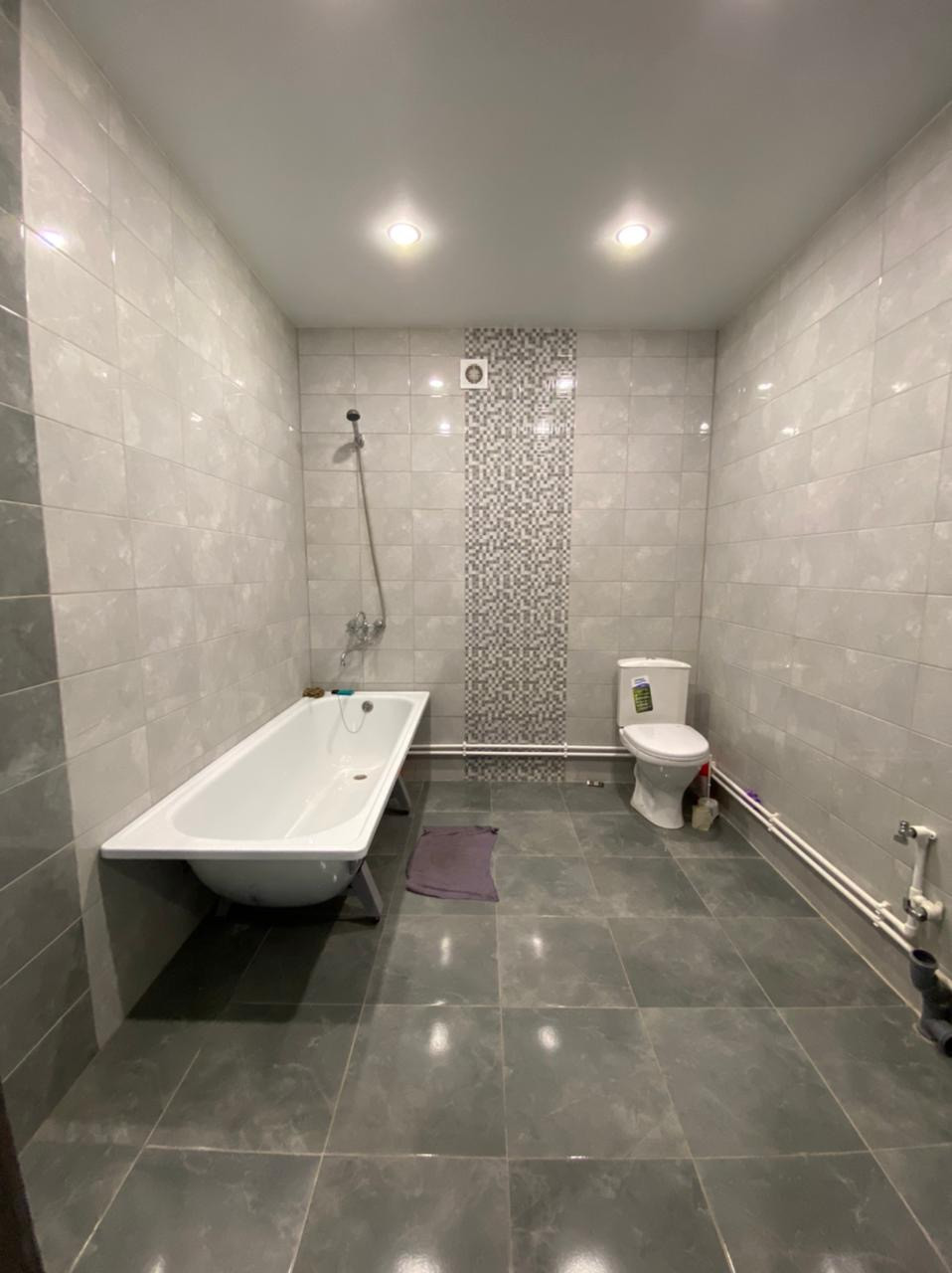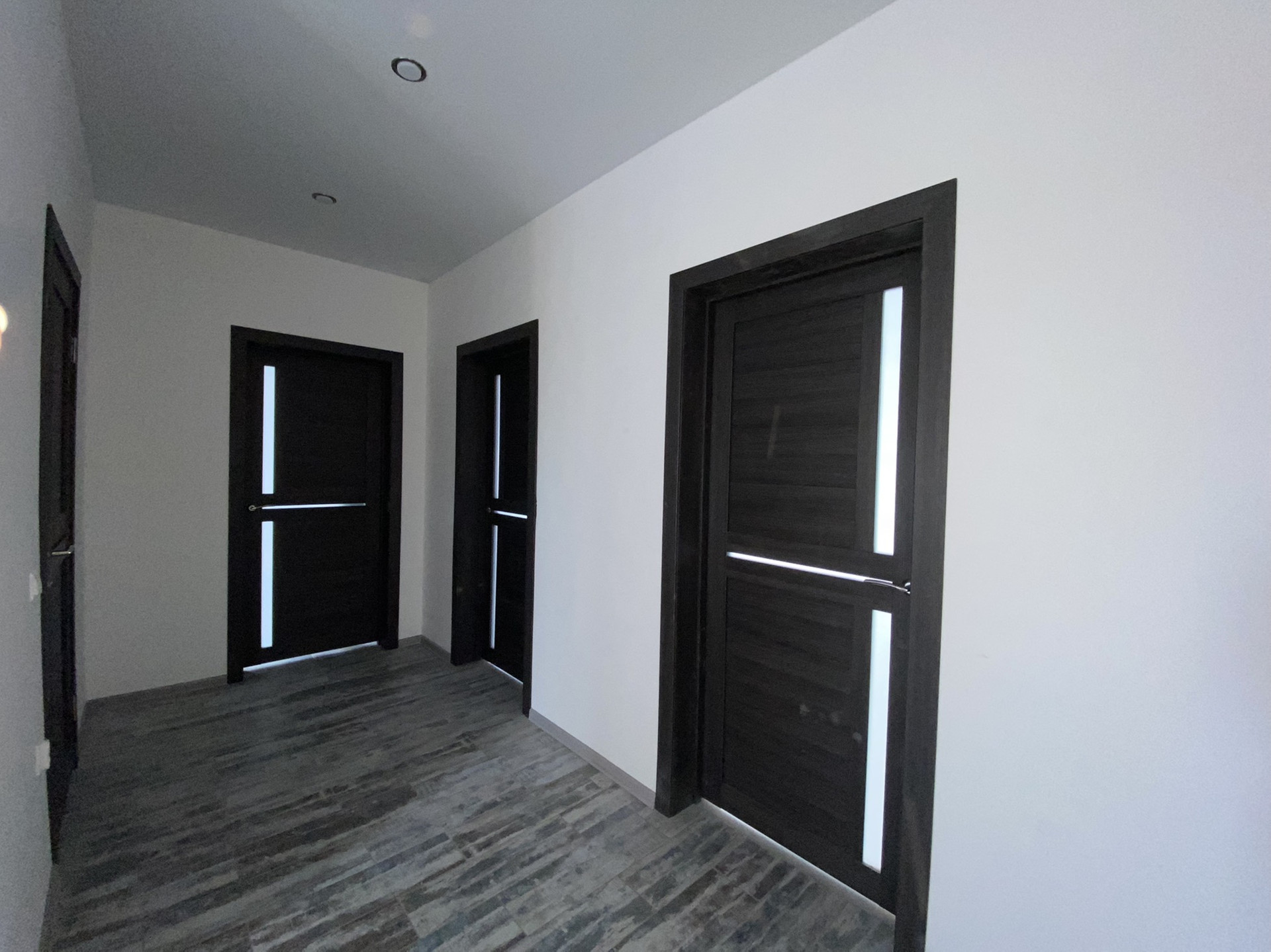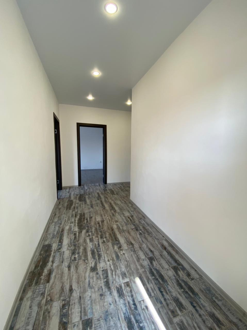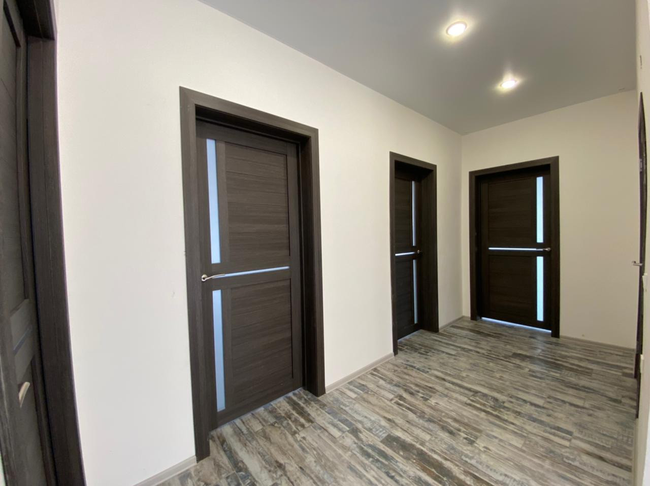 Внутренняя отделка: во всех комнатах натяжной потолок с точечным освещением, половое покрытие керамическая плитка (прихожая, сан.узел, кухня-гостиная), линолеум (спальни).