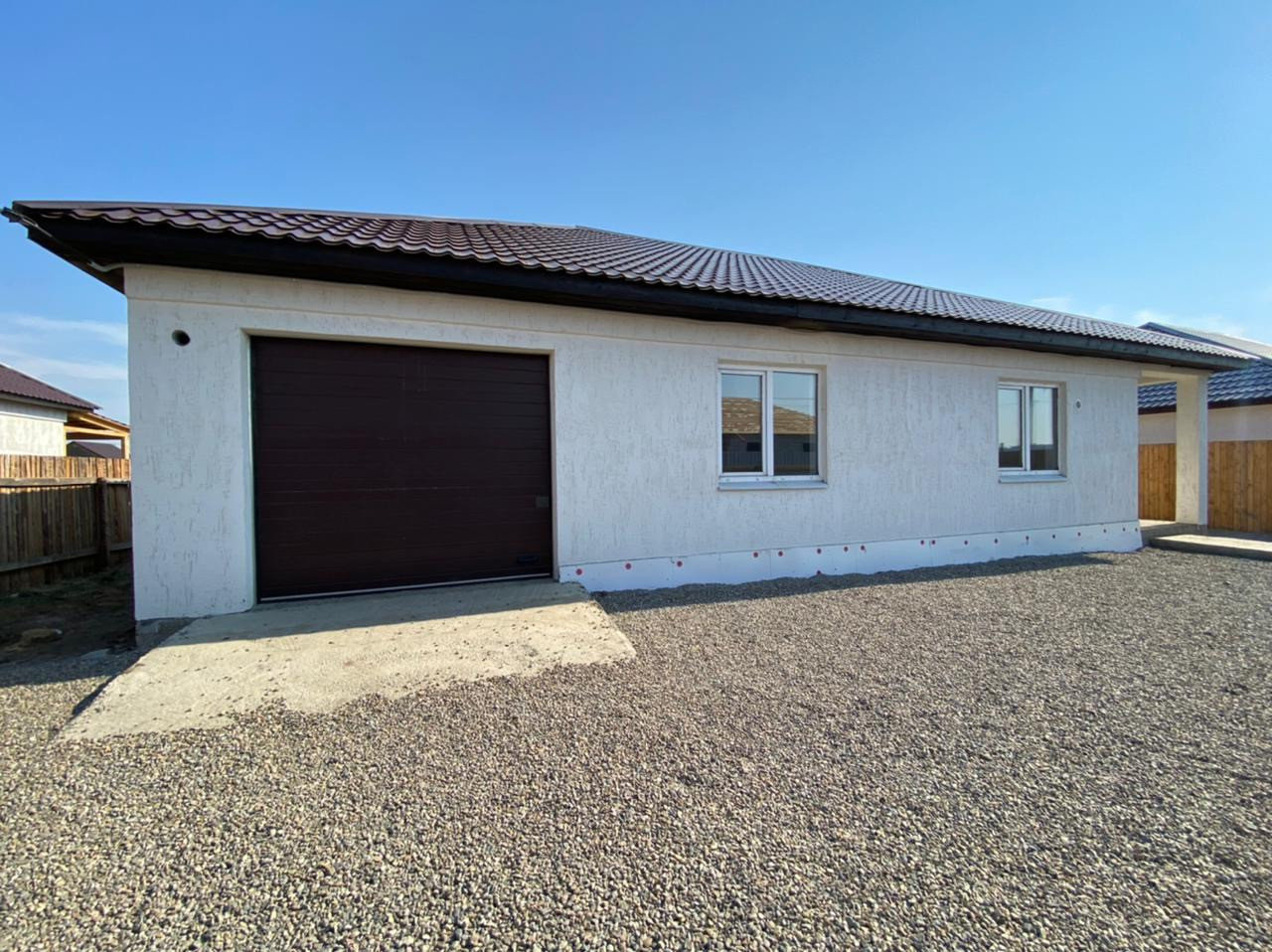 А теперь о доме: в нём расположены прихожая, 3 просторные спальни, кухня-студия с панорамным окном и выходом во двор, совмещённый сан.узел, гараж на две машины .