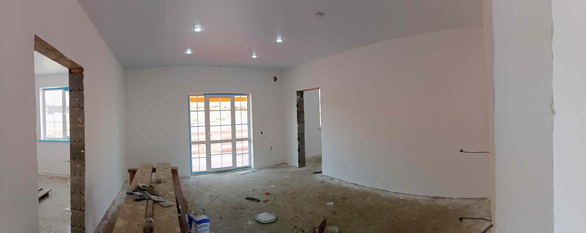 * Планировка: кухня-гостиная с выходом на террасу, 2 спальни, санузел.