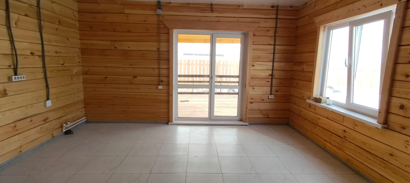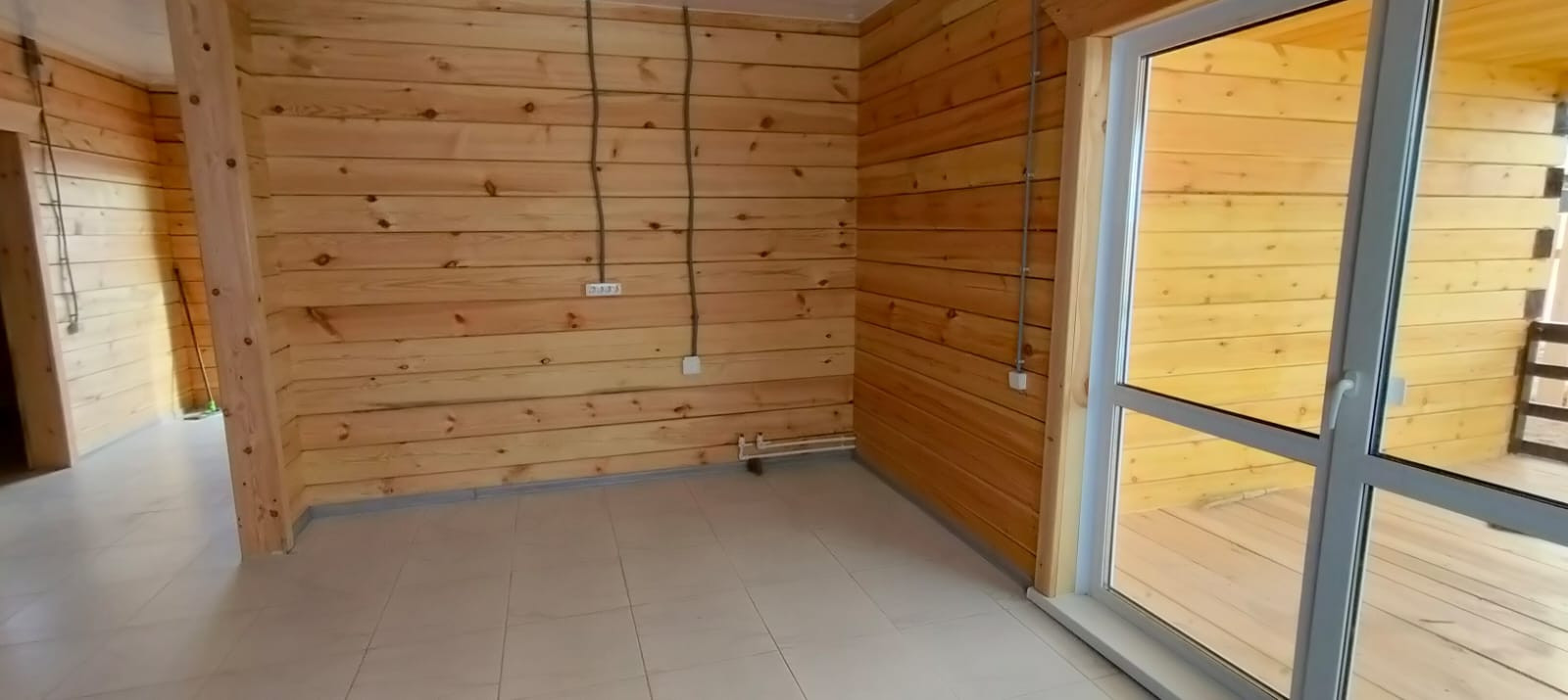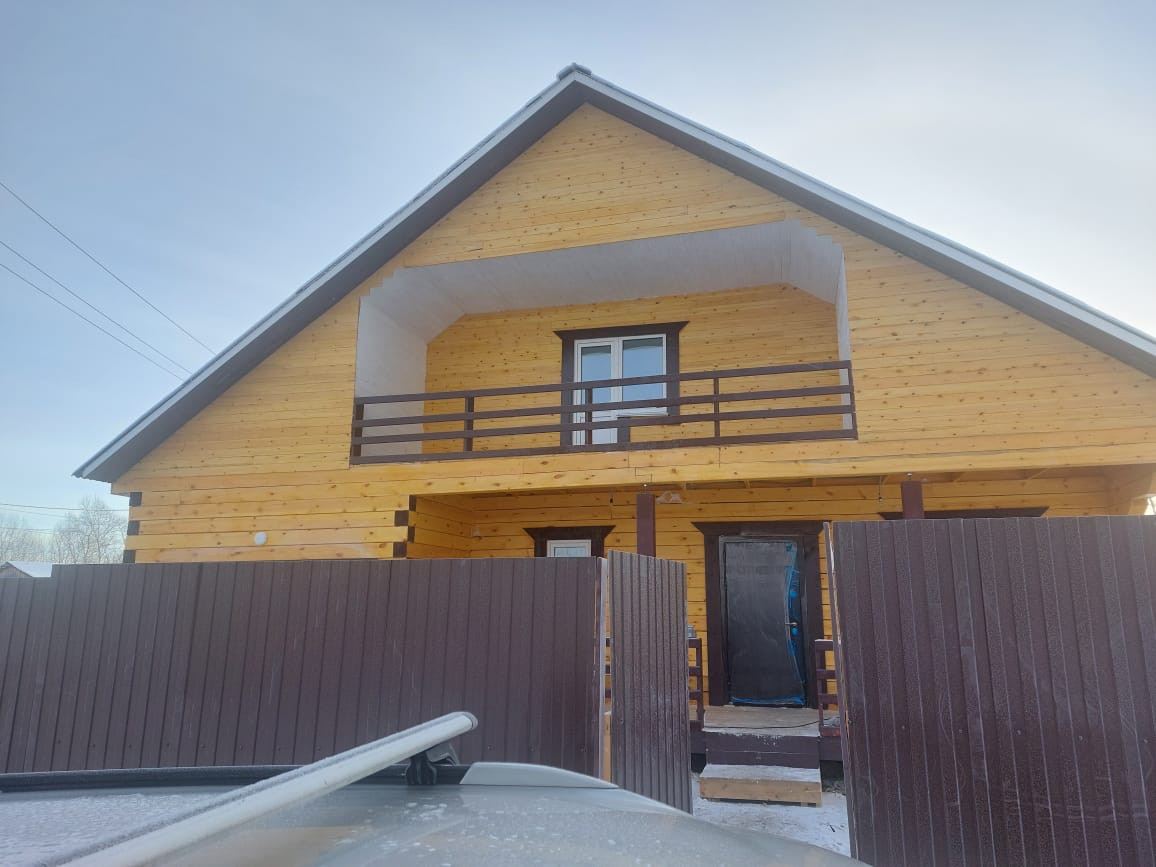 Продается дом из бруса. В доме 3 комнаты, кухня. Дом с гаражом. Недалеко асфальтированная дорога, магазин, остановка школьного автобуса и общественного транспорта