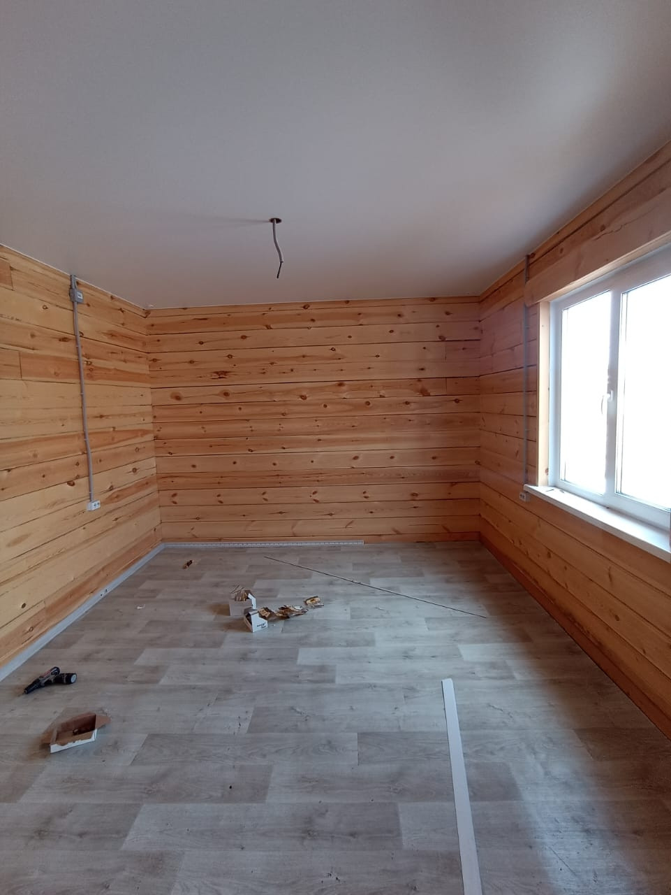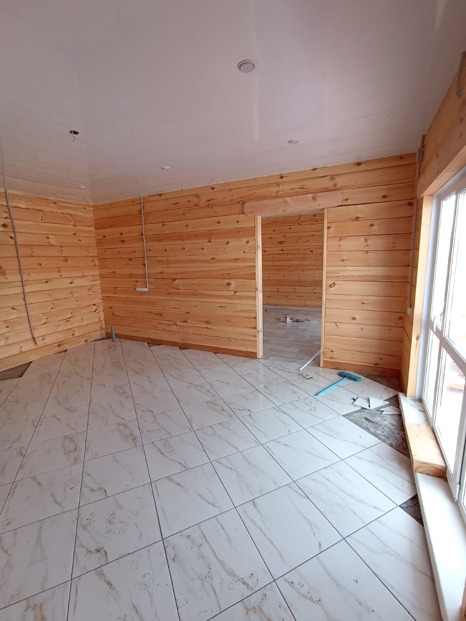 Дом 140м2, 10 соток, гараж, кухня-гостинная, санузел, 2 комнаты, натяжные потолки. На полу качественный линолеум и плитка.