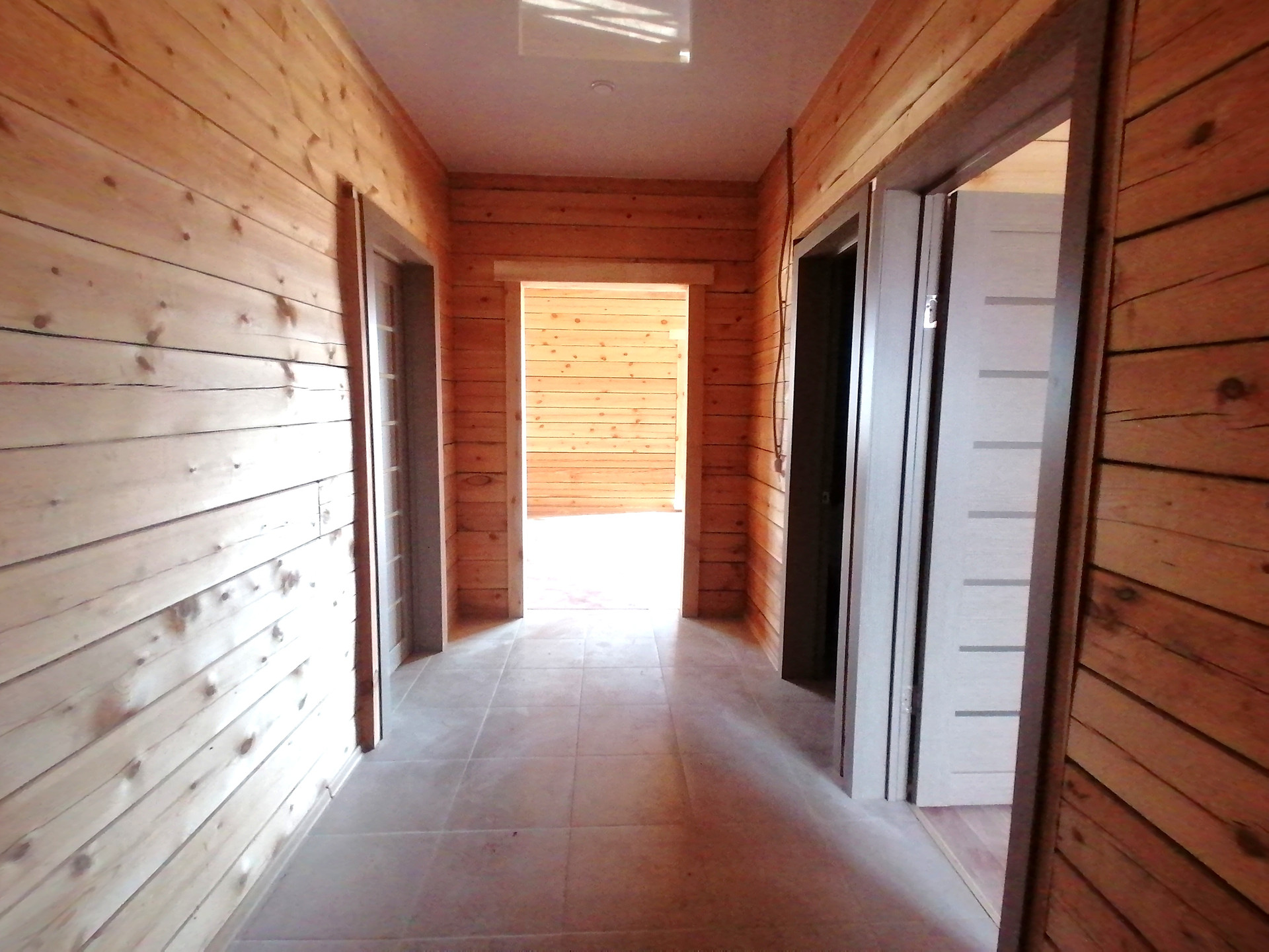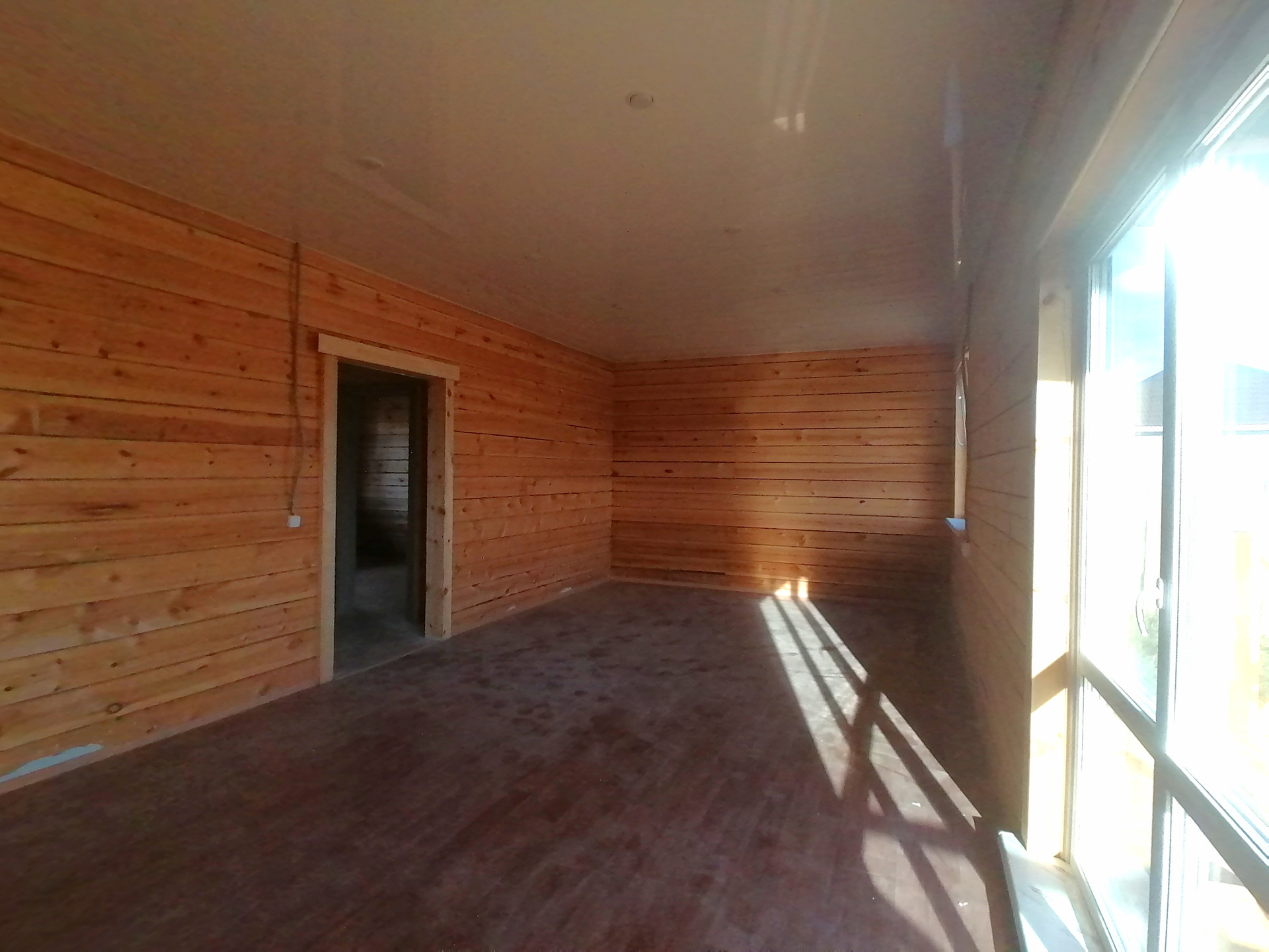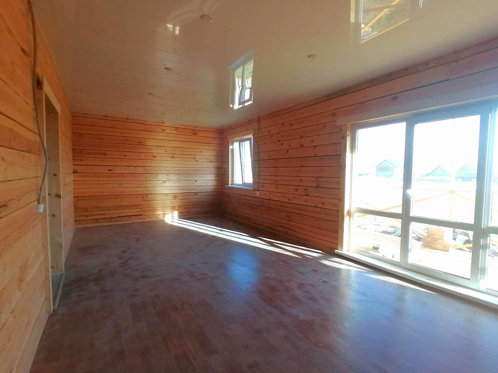 Во всем доме смонтированные натяжные потолки с точечным освещением. Сделаны выводы под люстру.
